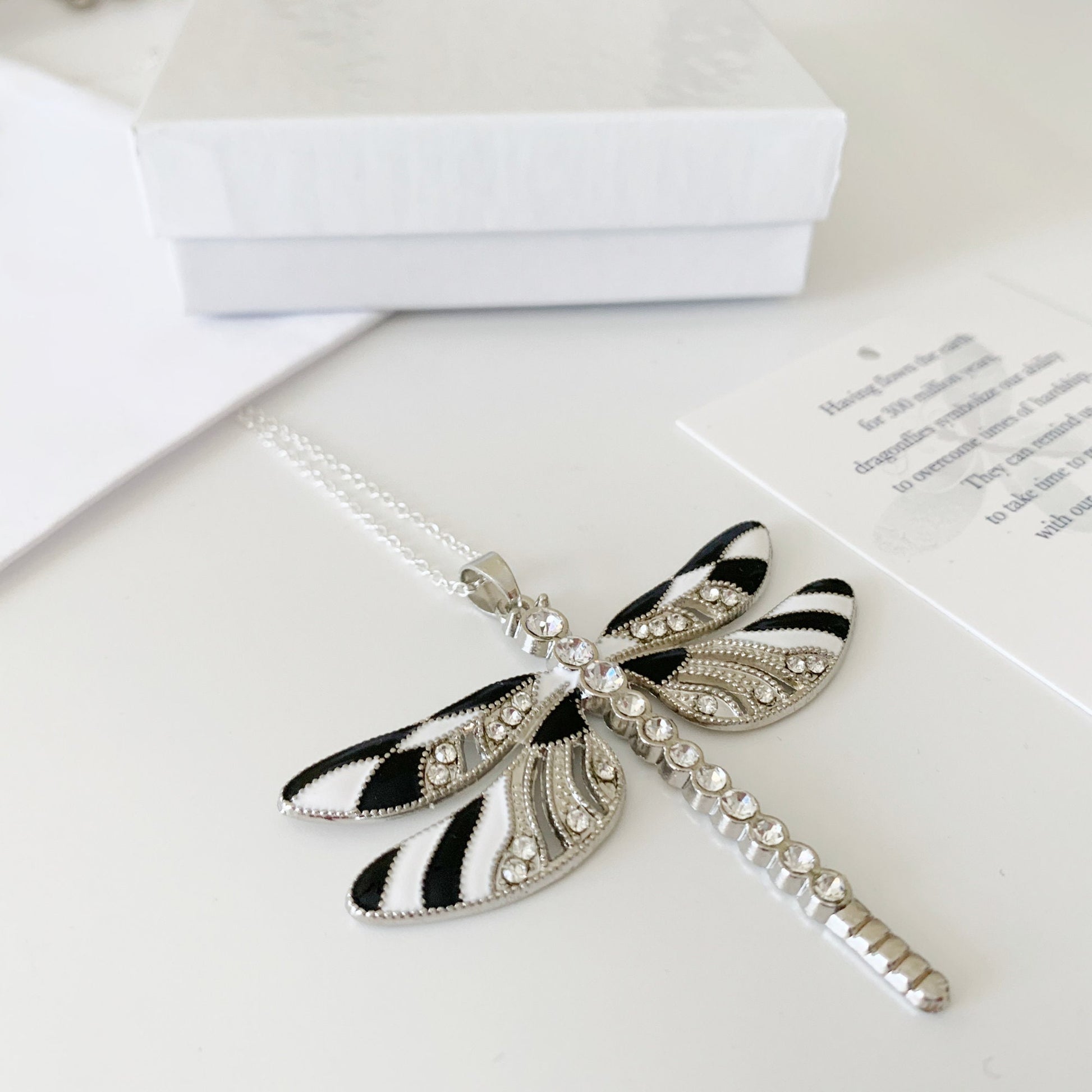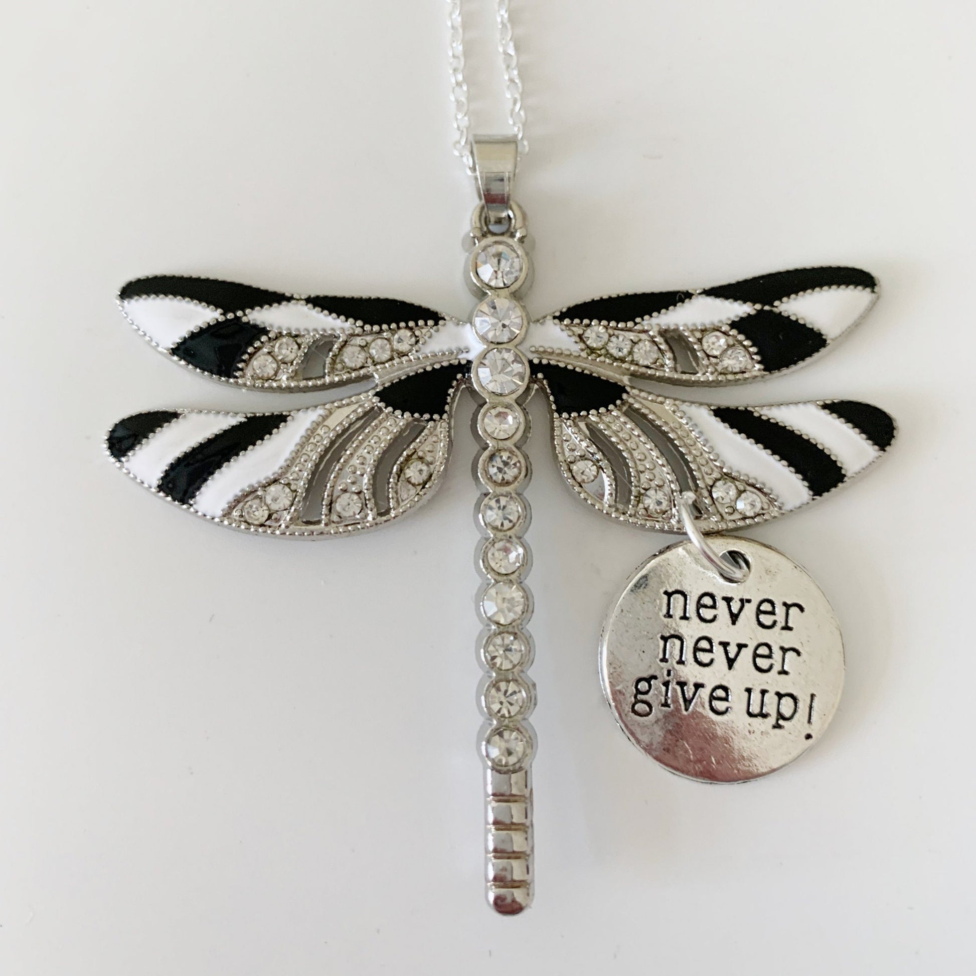 Zebra Black and White Dragonfly Keepsake Pendant Never Give Up