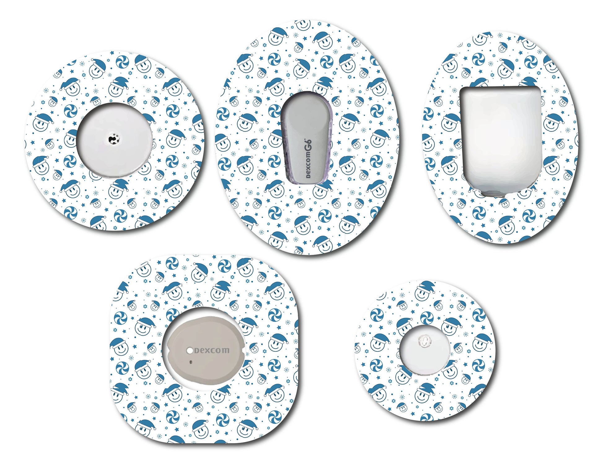 Blue Christmas Collection Smiles and Candy CGM patch for Freestyle Libre, Dexcom, Omnipod Continuous Glucose Monitor patches and stickers