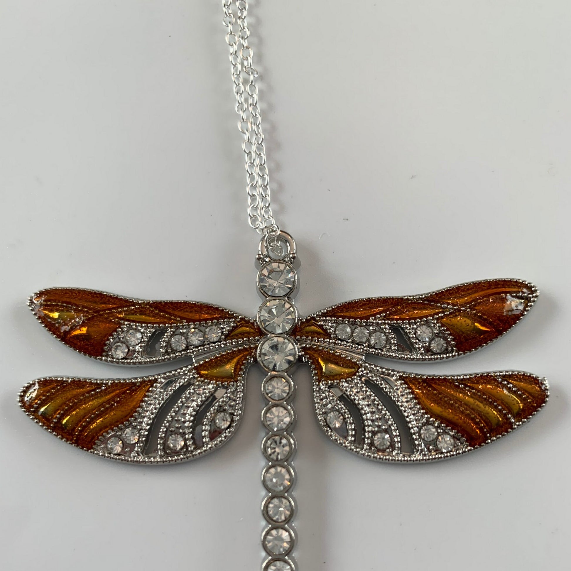 Dragonfly is made of platinum plated zinc alloy that is zinc and lead free. It measures approximately 64 mm wide by 57 mm long.