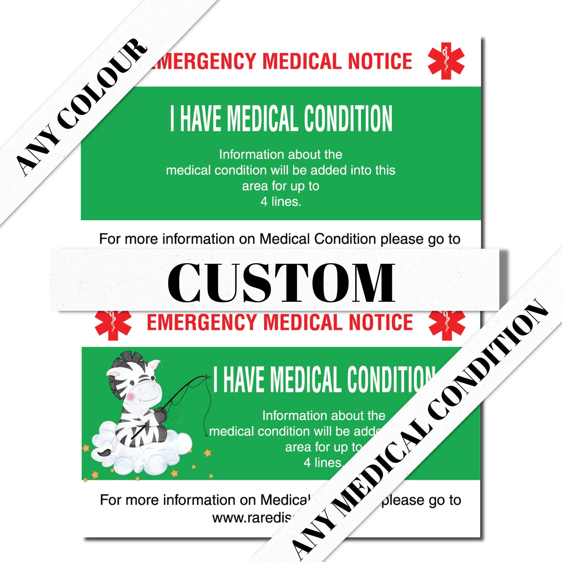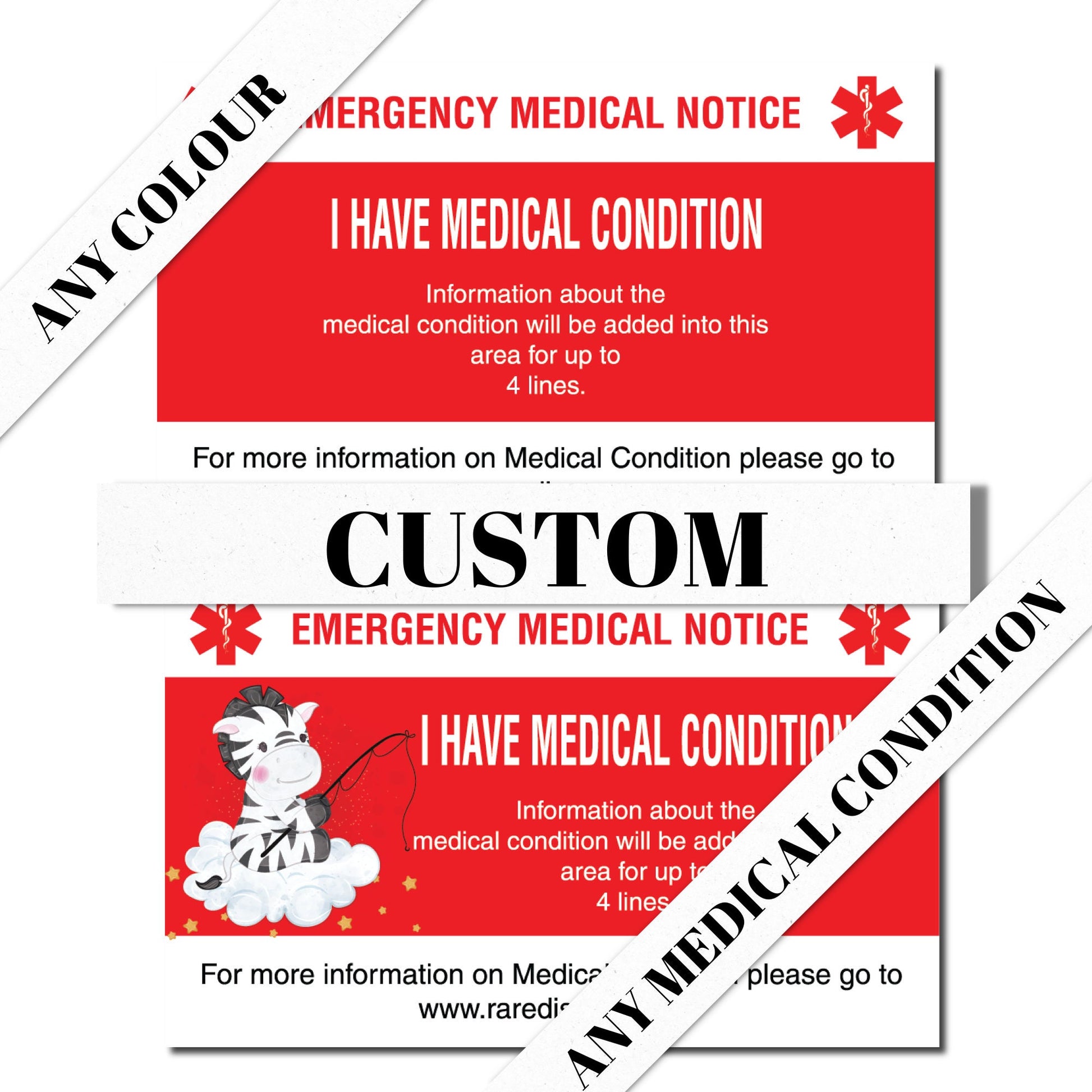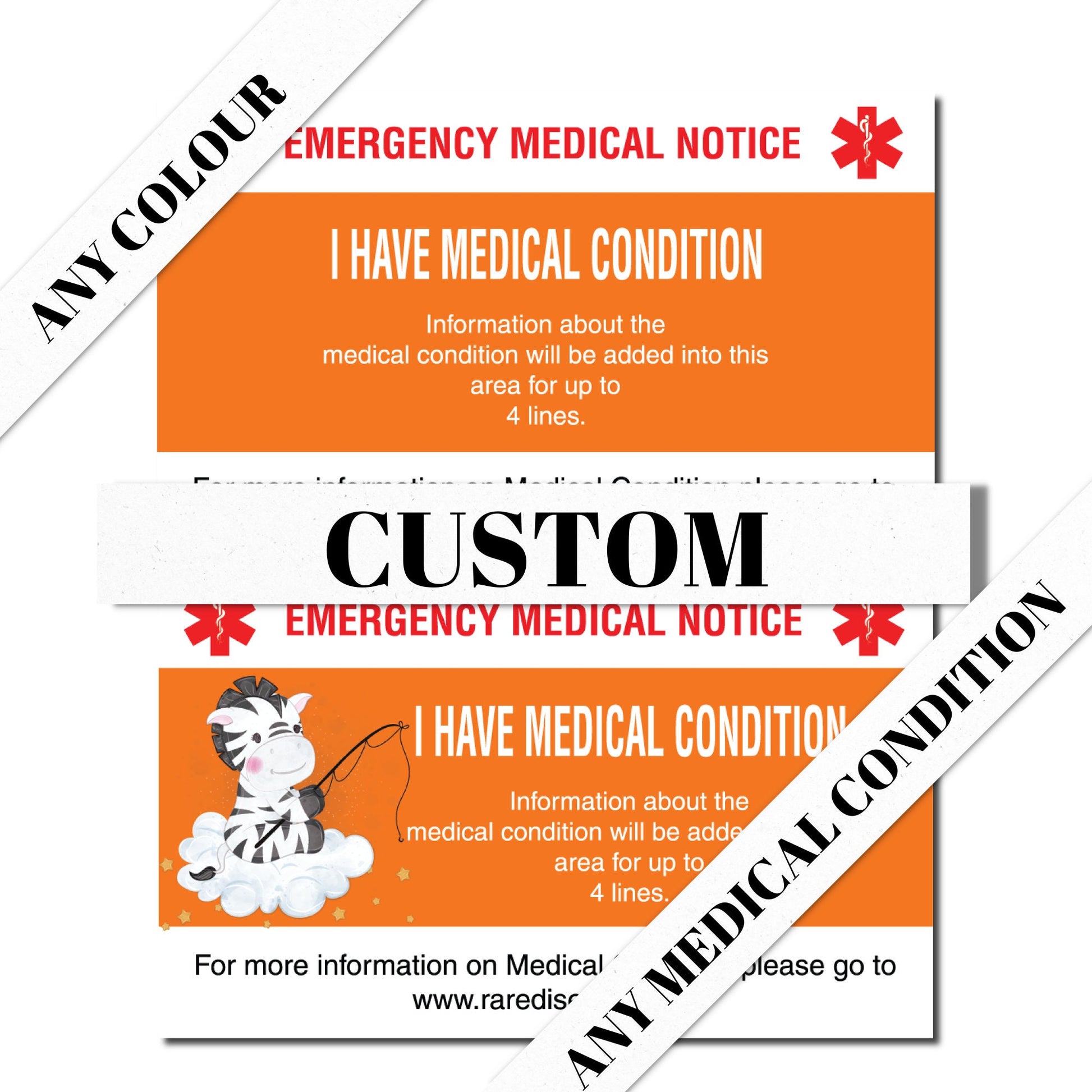 Custom Personalized Emergency Medical Card Medic Alert Card, Rare Disease Awareness