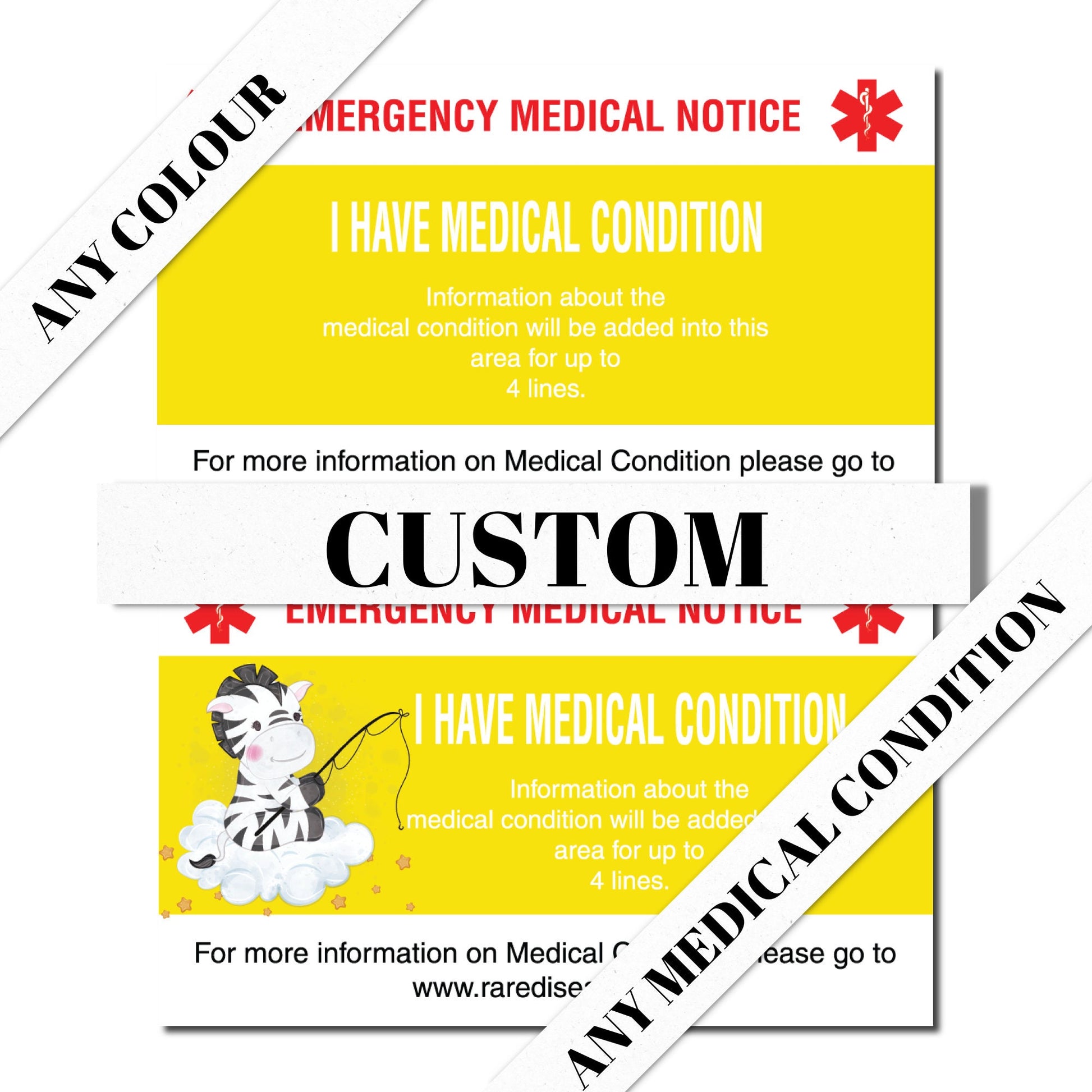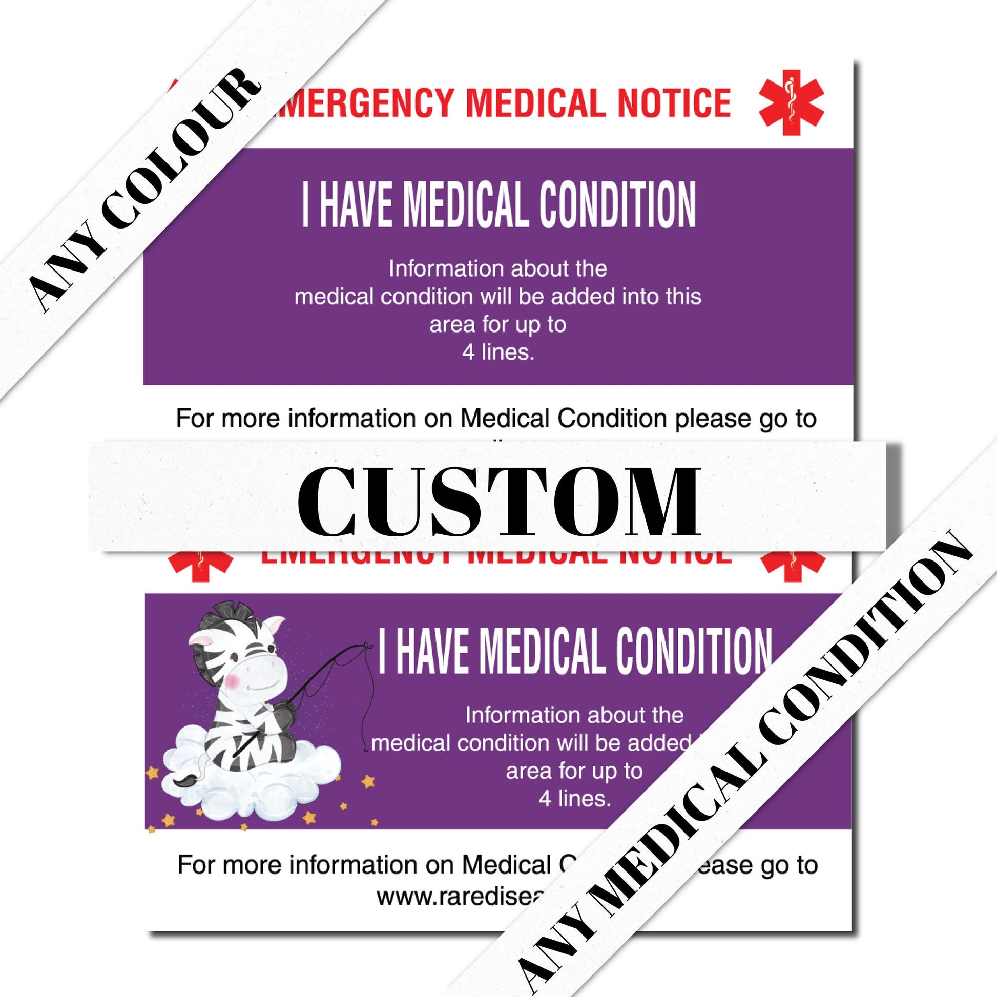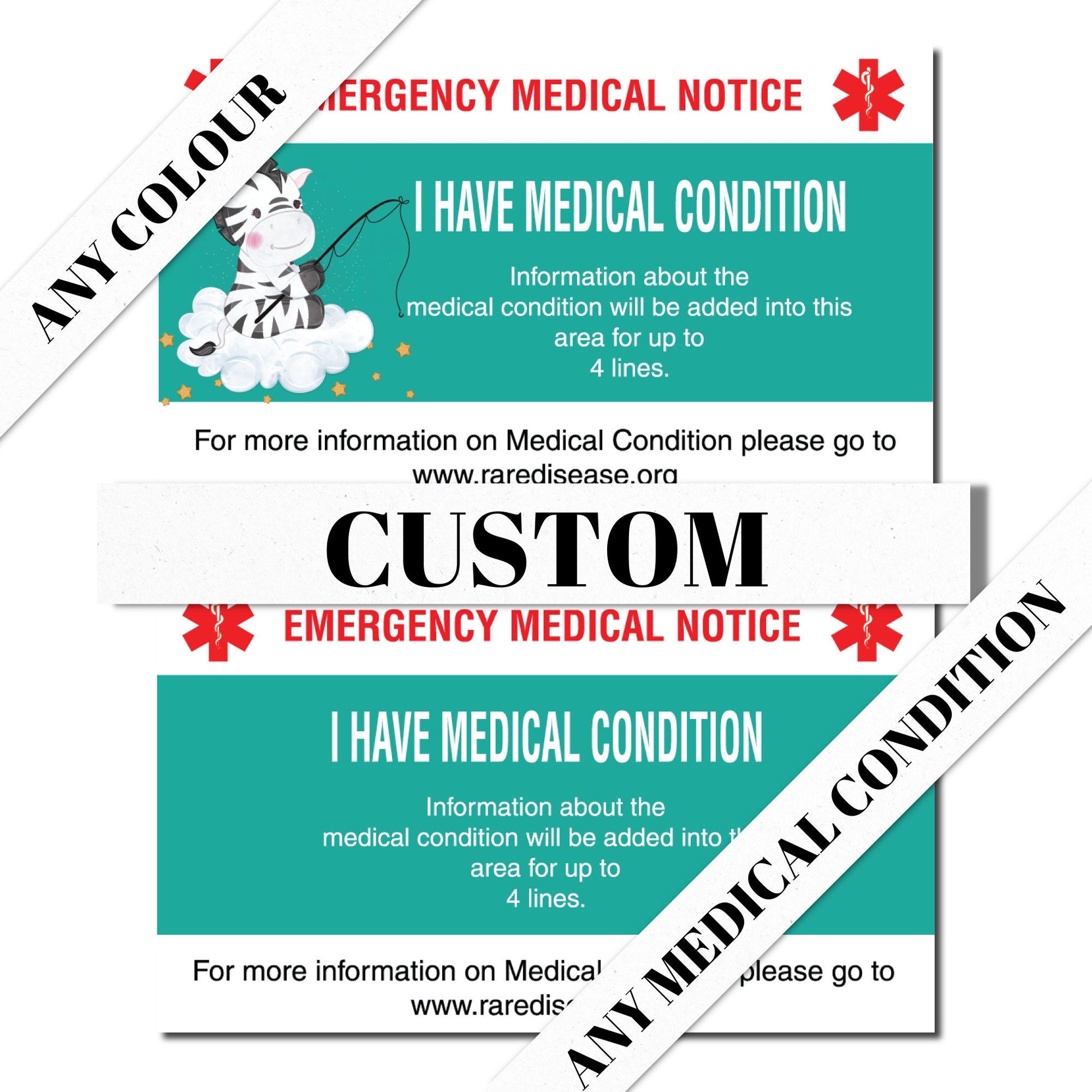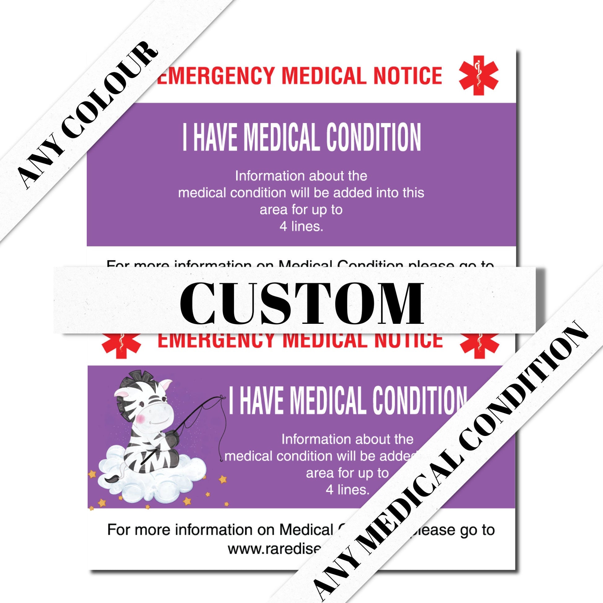 Custom Personalized Emergency Medical Card Medic Alert Card, Rare Disease Awareness