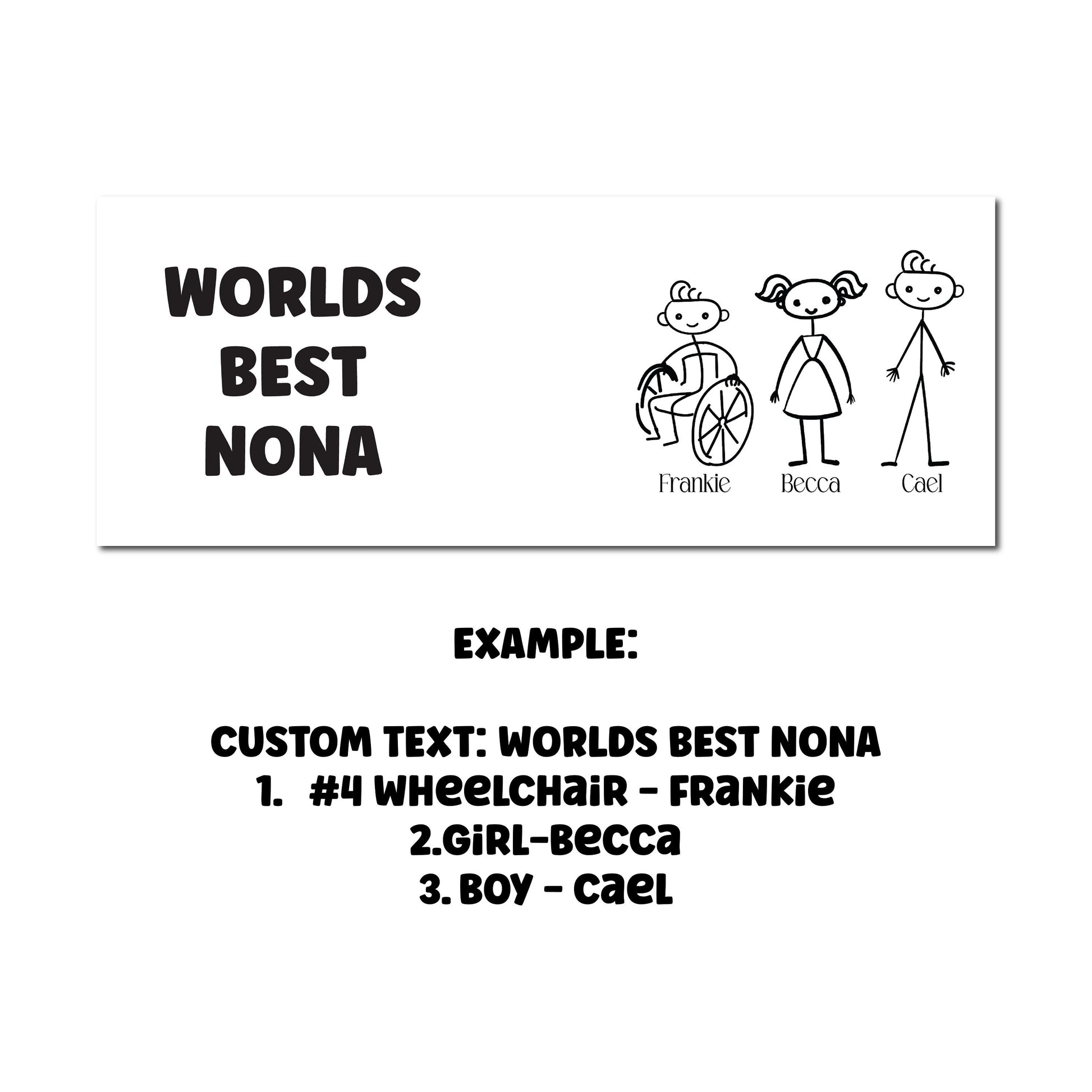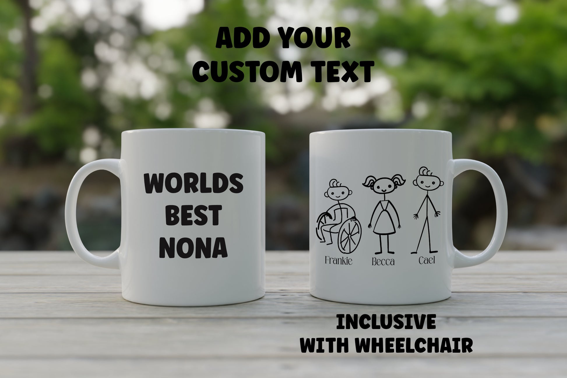 But what makes this mug truly special is its customizable design. You have the freedom to choose how you want to display your stick figures, whether it's with or without a custom title like "World's Best Nona" or any other endearing title that reflects the unique bond within your family.