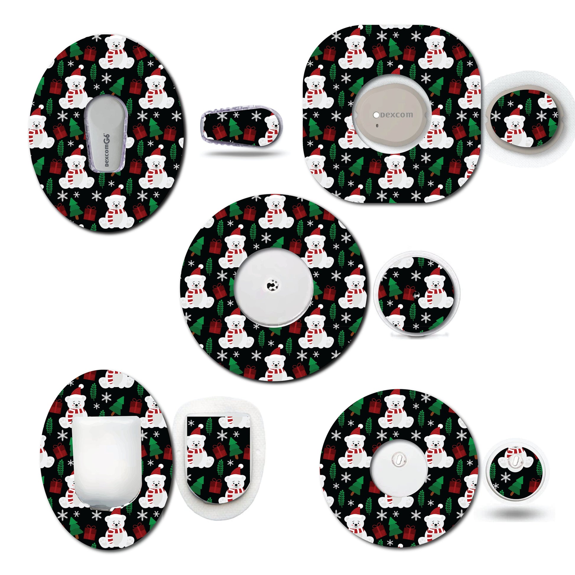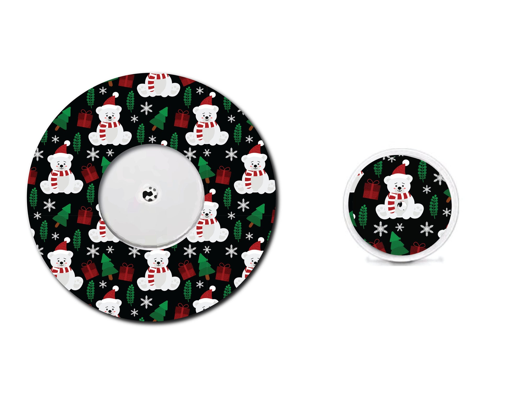 Cute Christmas Bears Continuous Glucose Monitor (CGM) Decorative Over Patch and Sticker/Tattoo Set
