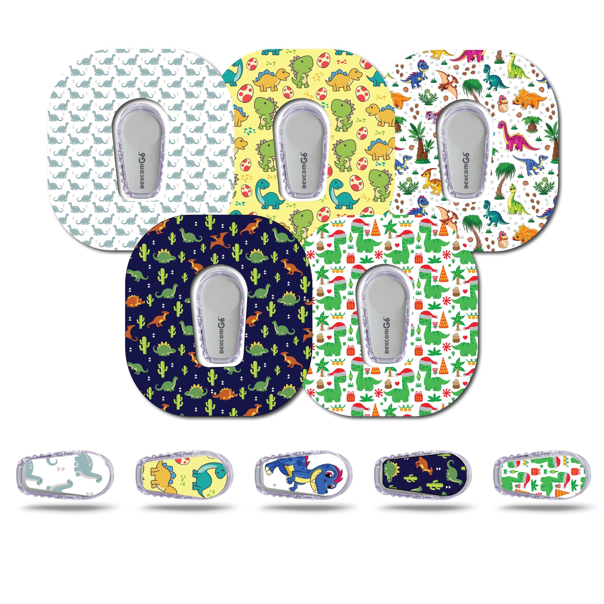 Dinosaur Collection Patch & Sticker Bundle Dexcom G6- Set of 5 Patch Sticker Overlay for CGM monitor Christmas Dino Included