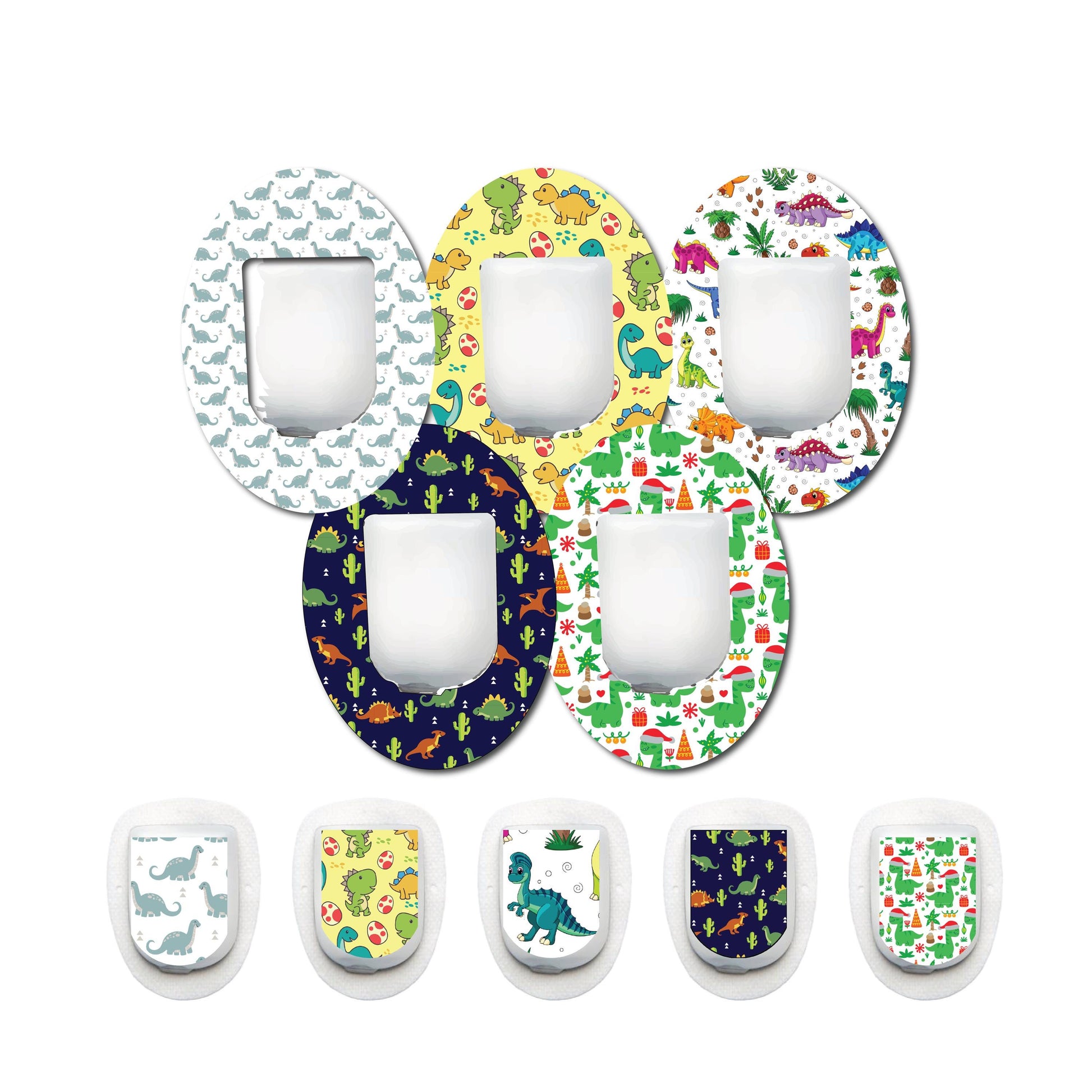 Dinosaur Collection Patch & Sticker Bundle Omnipod- Set of 5 Patch Sticker Overlay for CGM monitor Christmas Dino Included
