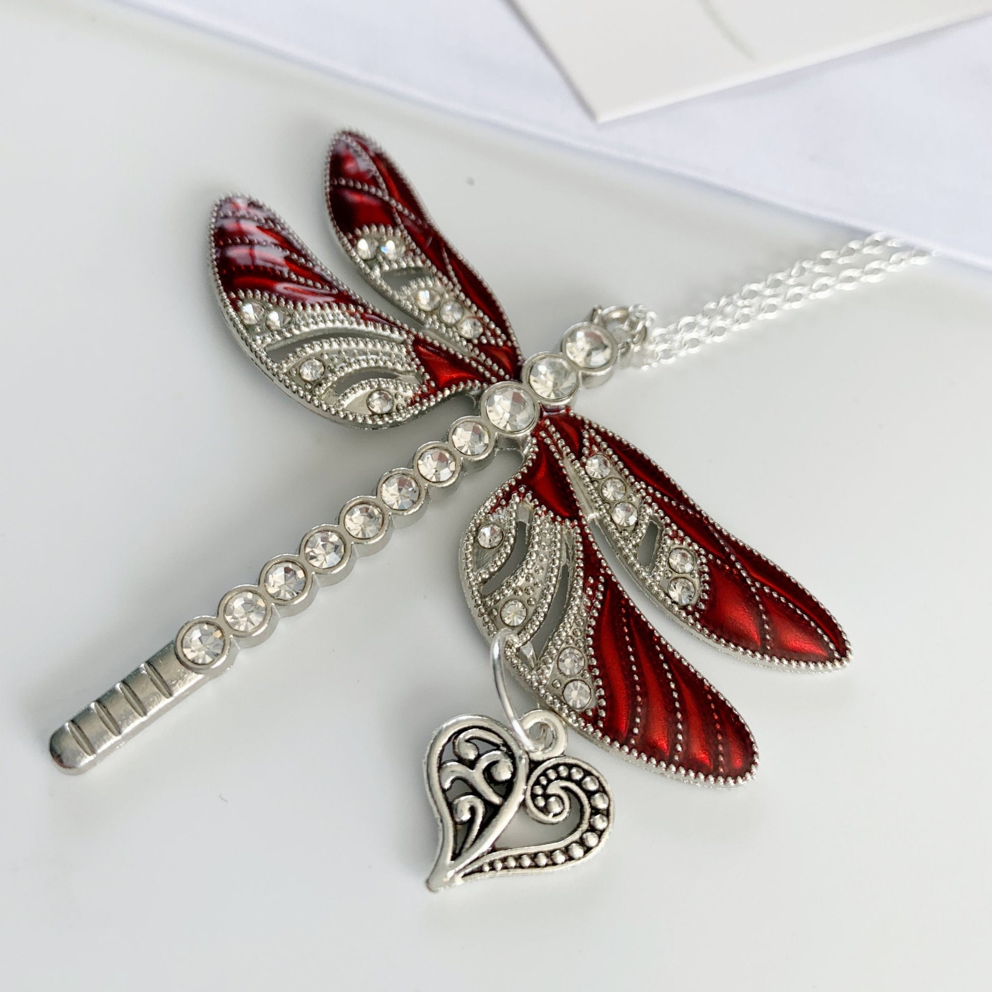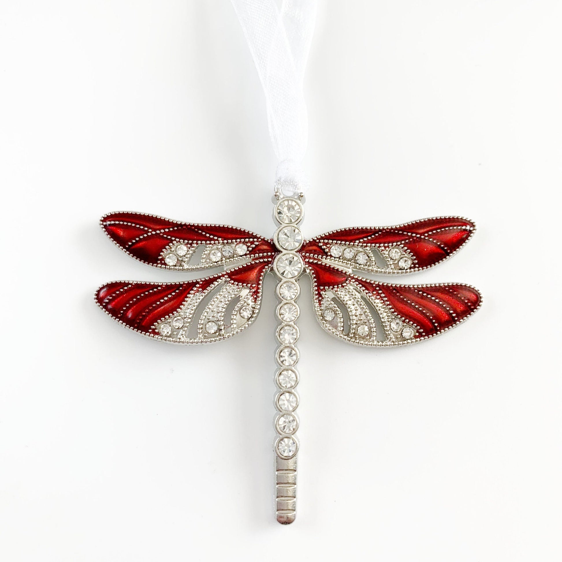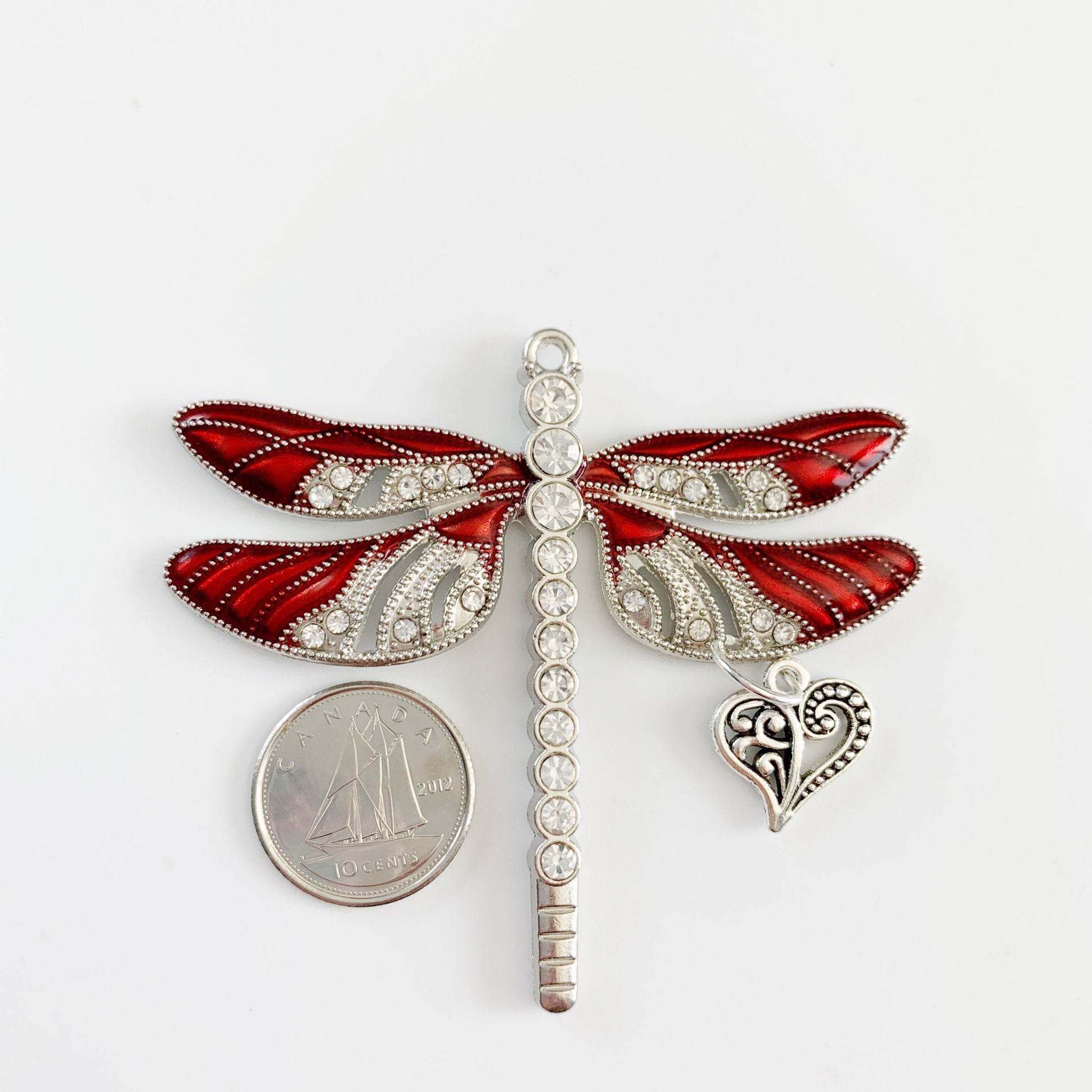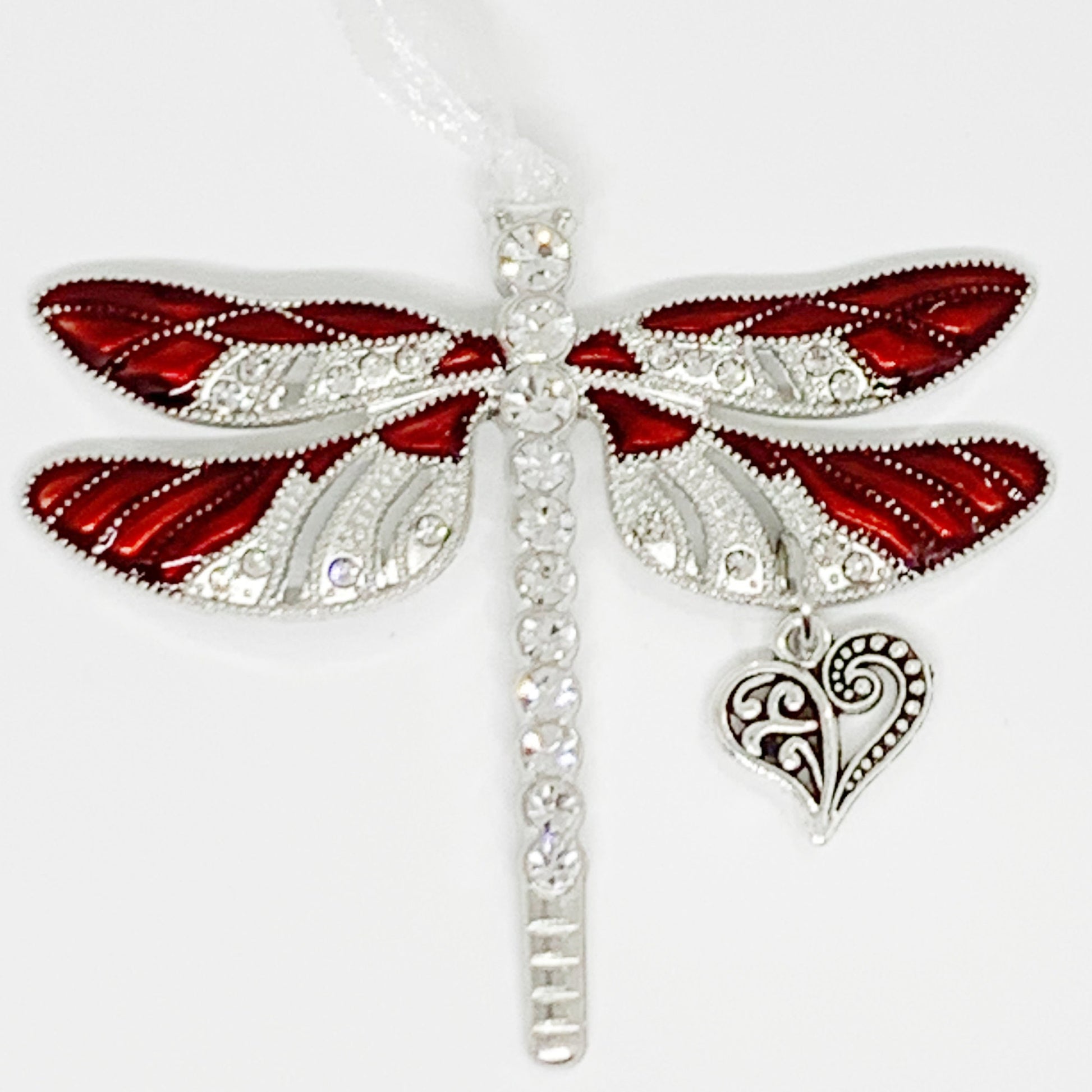 Dragonfly Heart Charm Ornament - Red Keepsake Ornament, Mama and mini, Mothers First Christmas, Awareness Ornament
