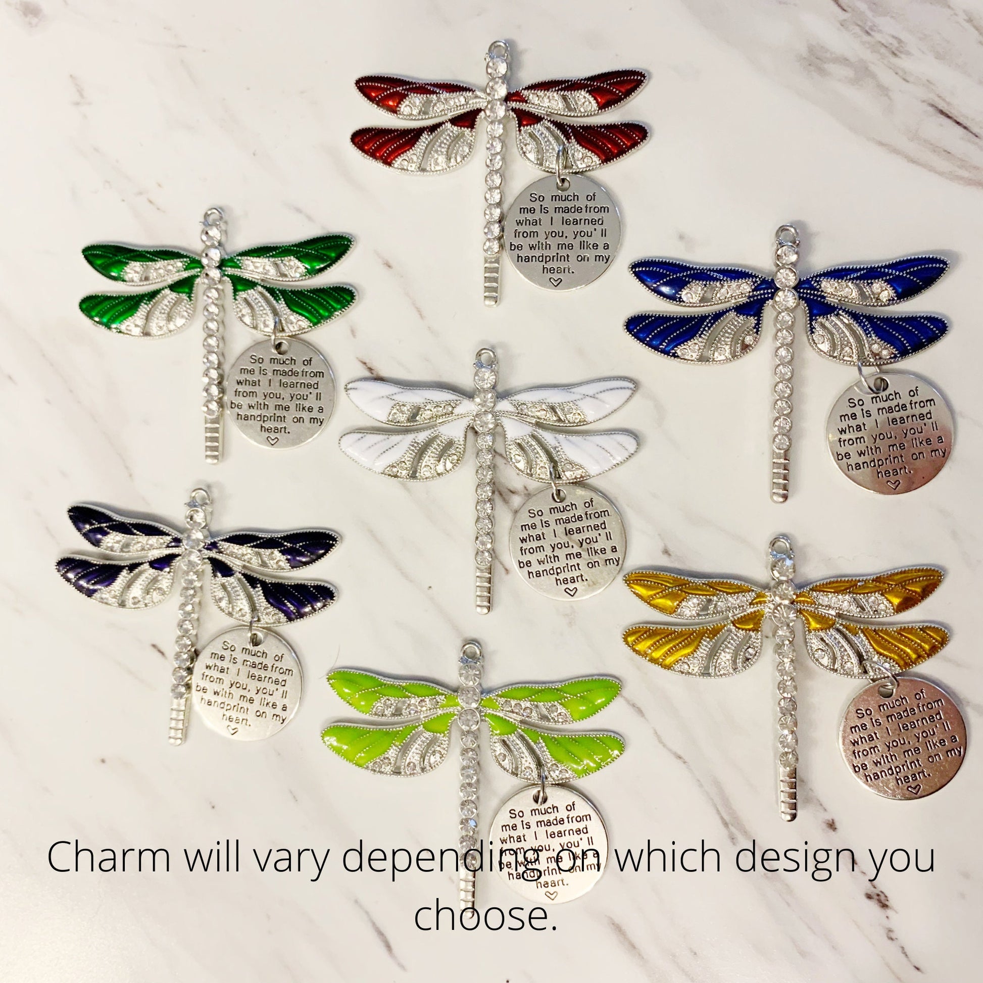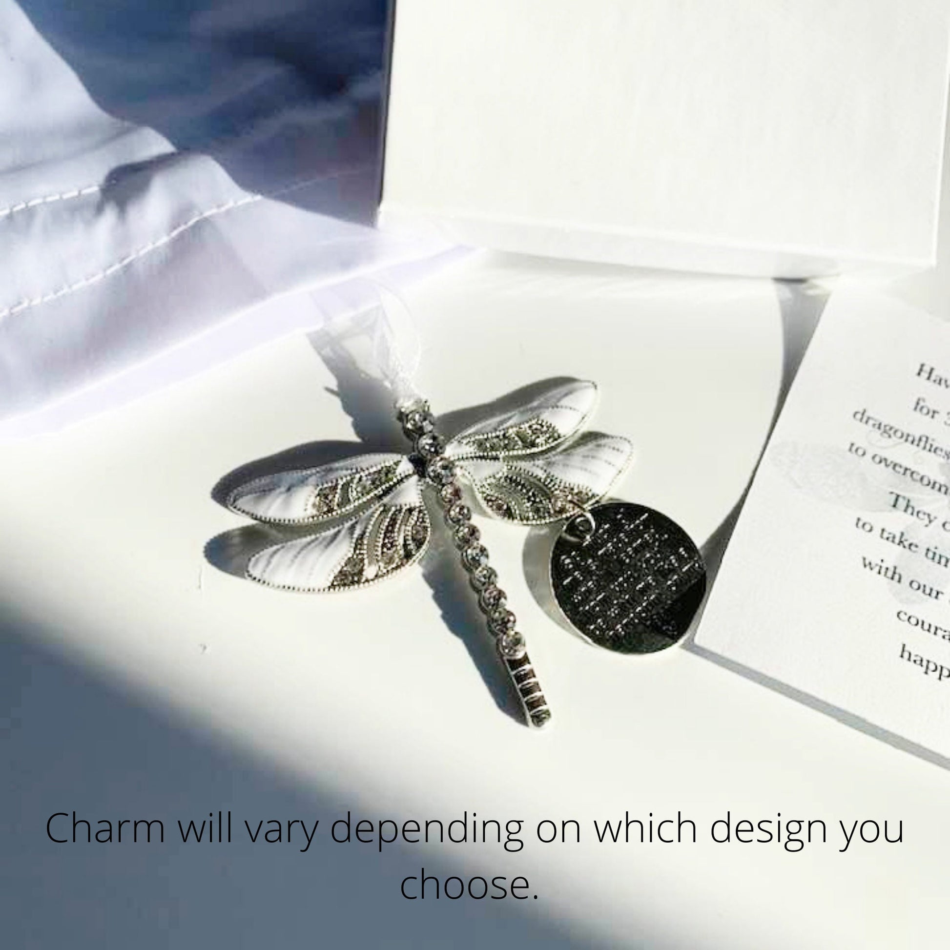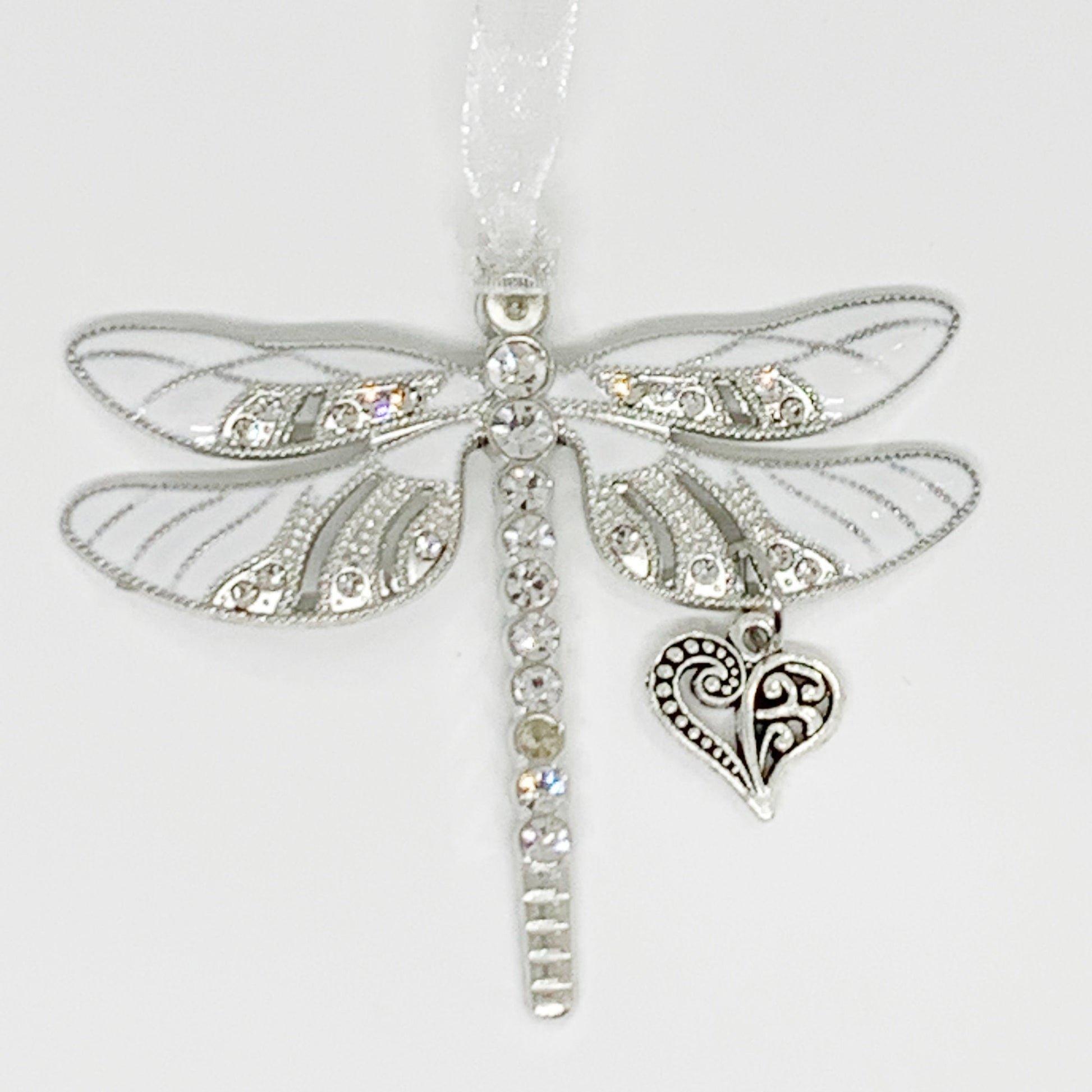 Dragonfly Heart Charm Ornament - White Keepsake Ornament, Mama and mini, Mothers First Christmas, Awareness Ornament