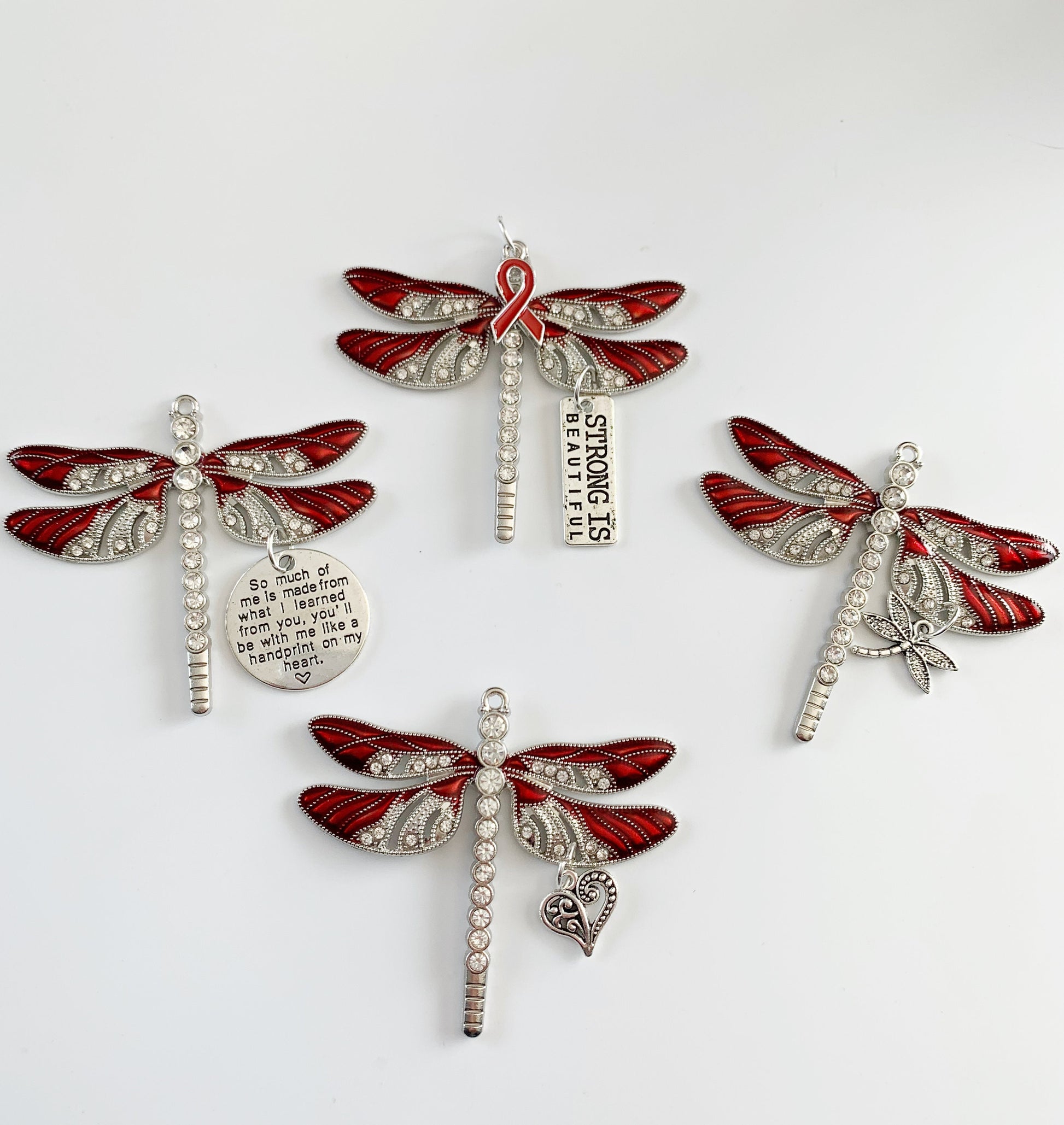 Dragonfly Ornament - Red Keepsake Ornament, Mama and mini, Mothers First Christmas, Awareness Ornament