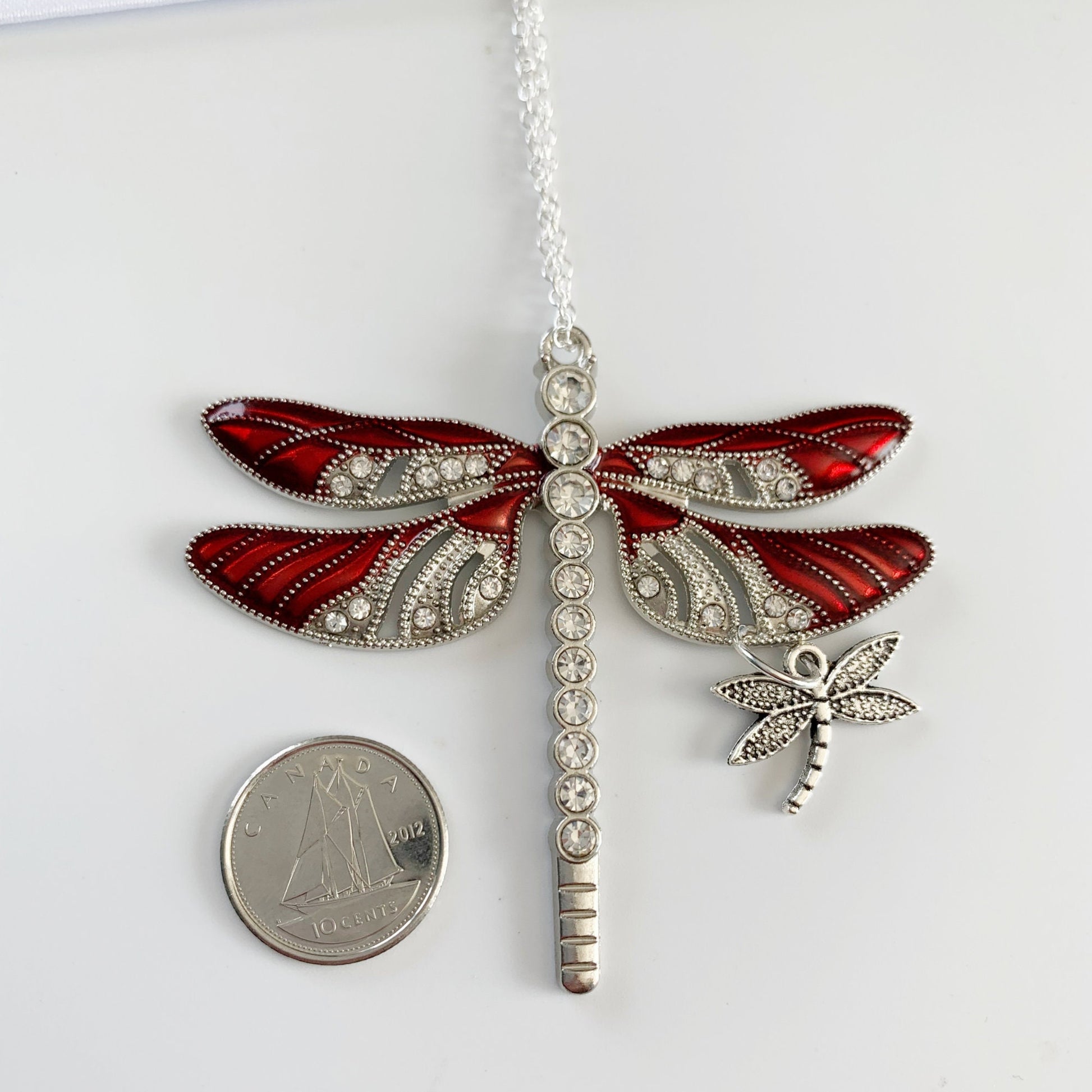 Dragonfly is made of platinum plated zinc alloy that is zinc and lead free. It measures approximately 64 mm wide by 57 mm long.
