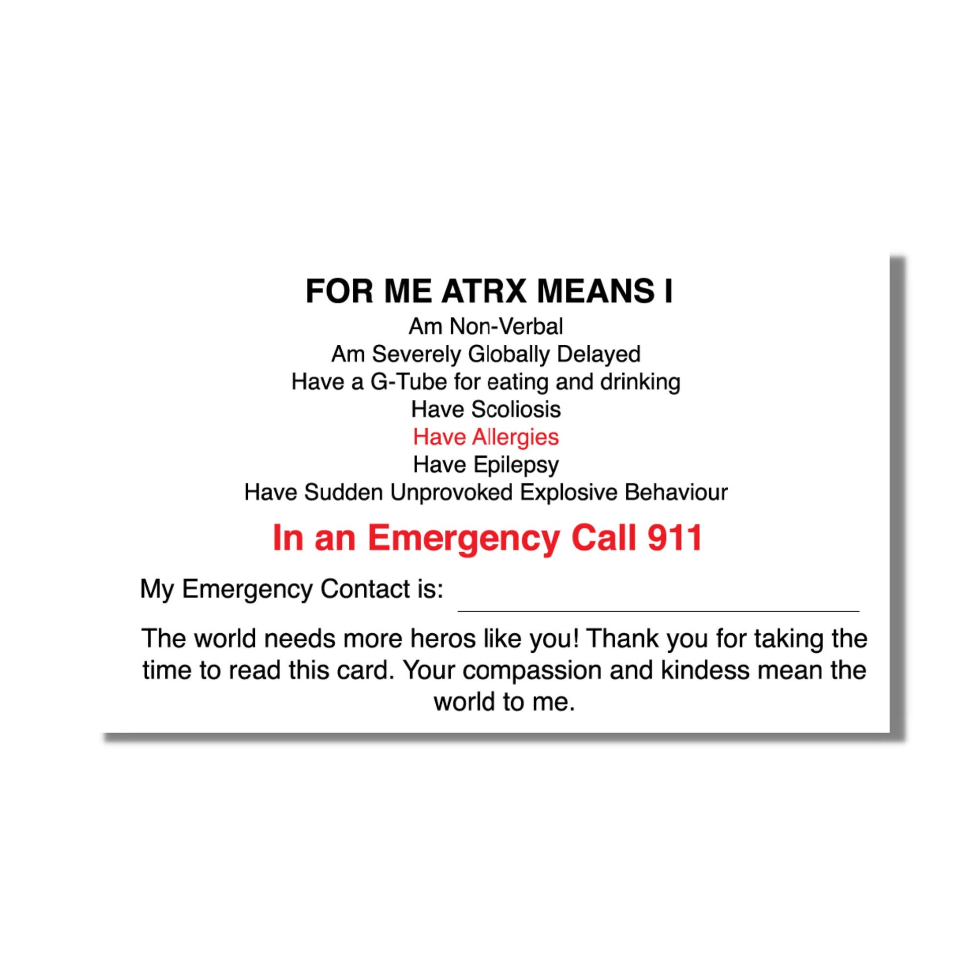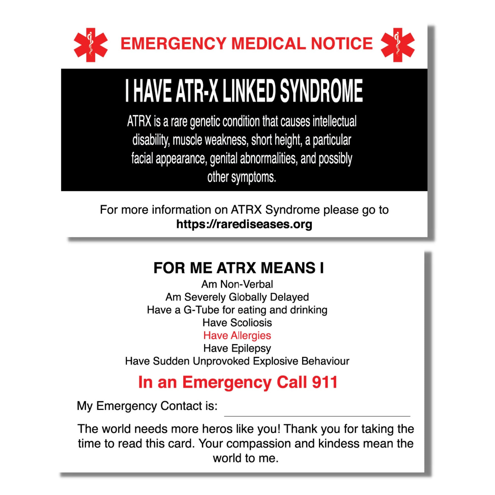 Emergency Medical Card ATRX-Syndrome Medic Alert Card, Rare Disease Awareness