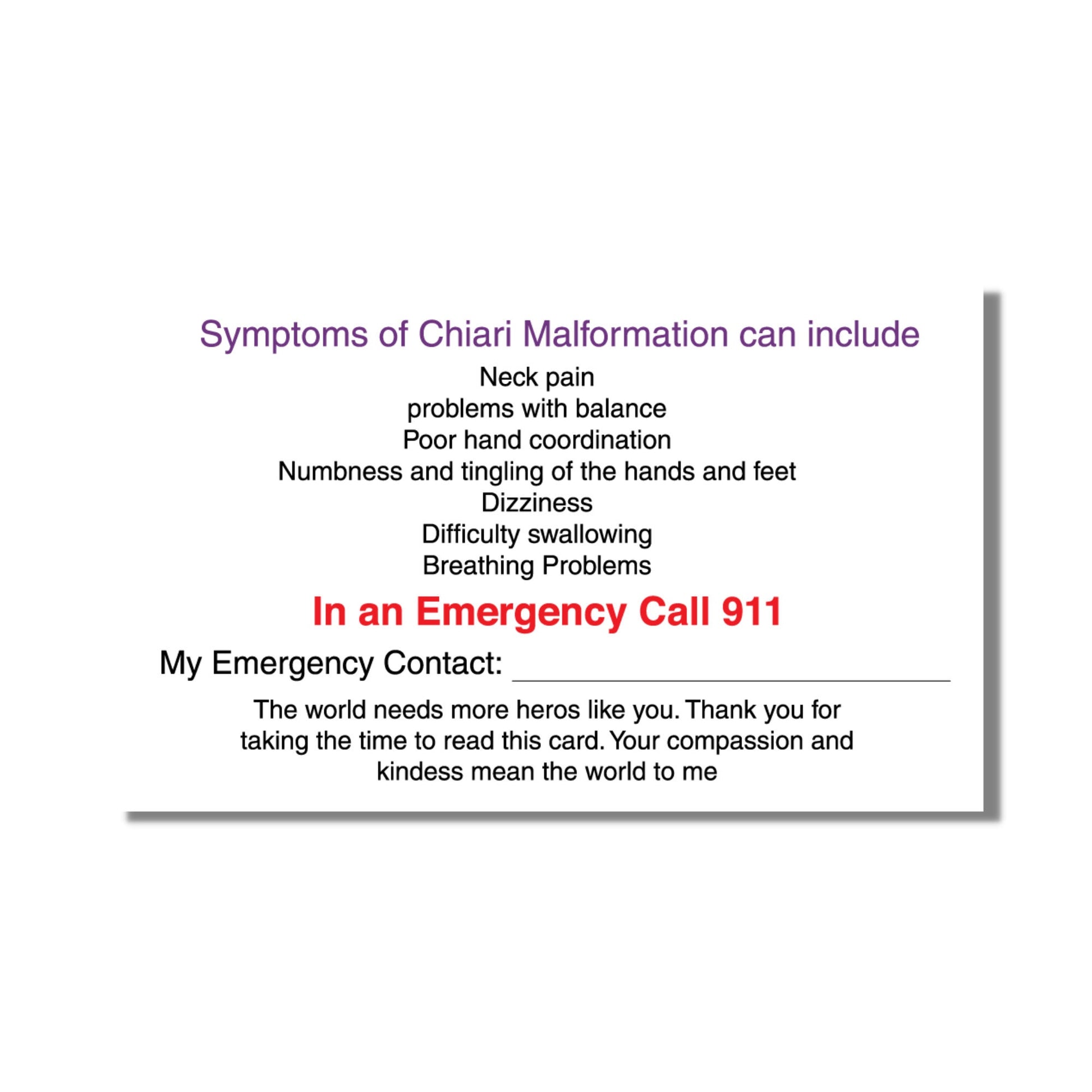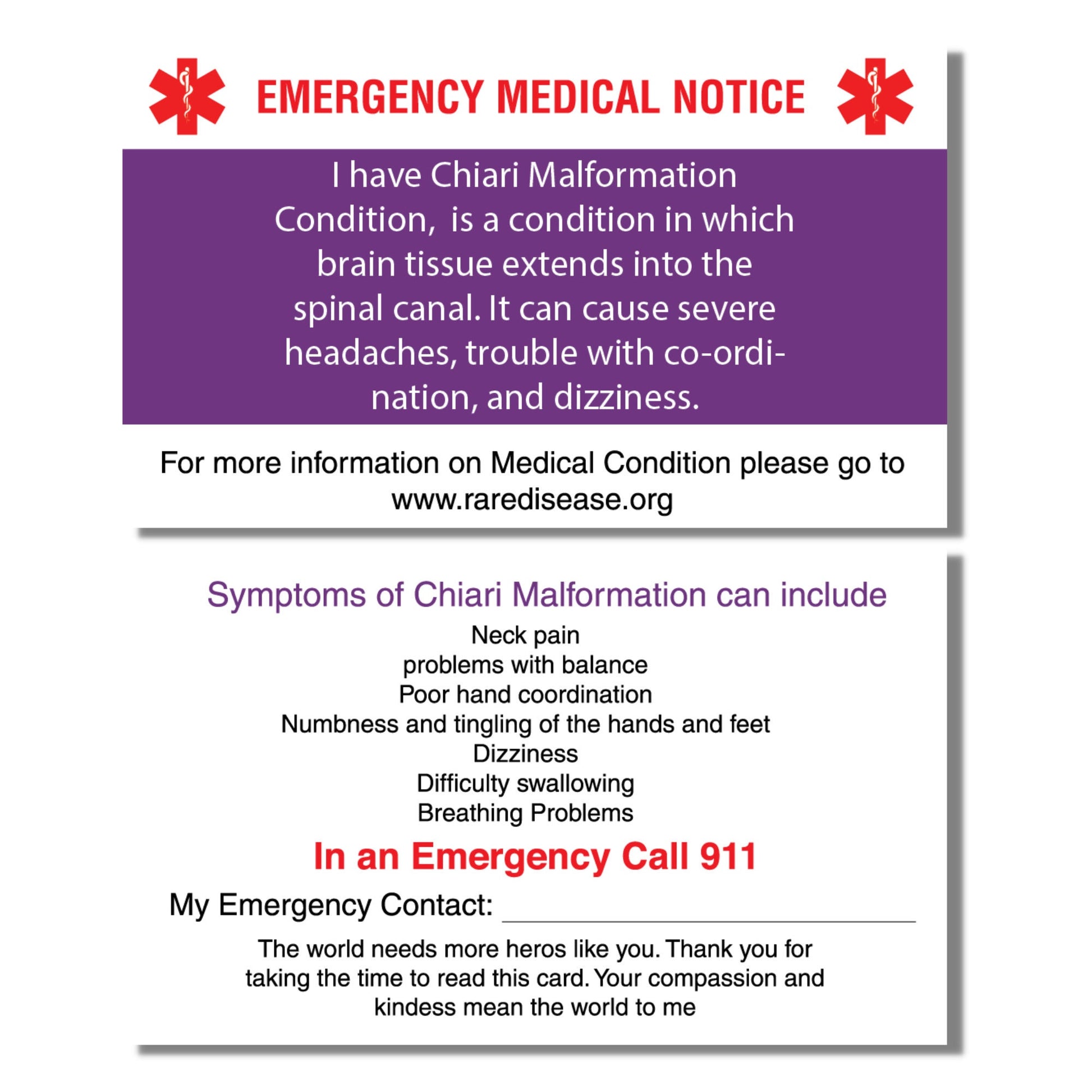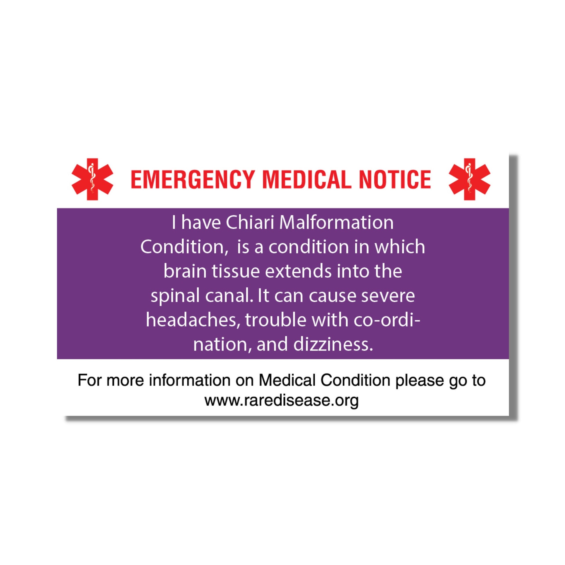Emergency Medical Card Chiari Malformation Medic Alert Card, Rare Disease Awareness