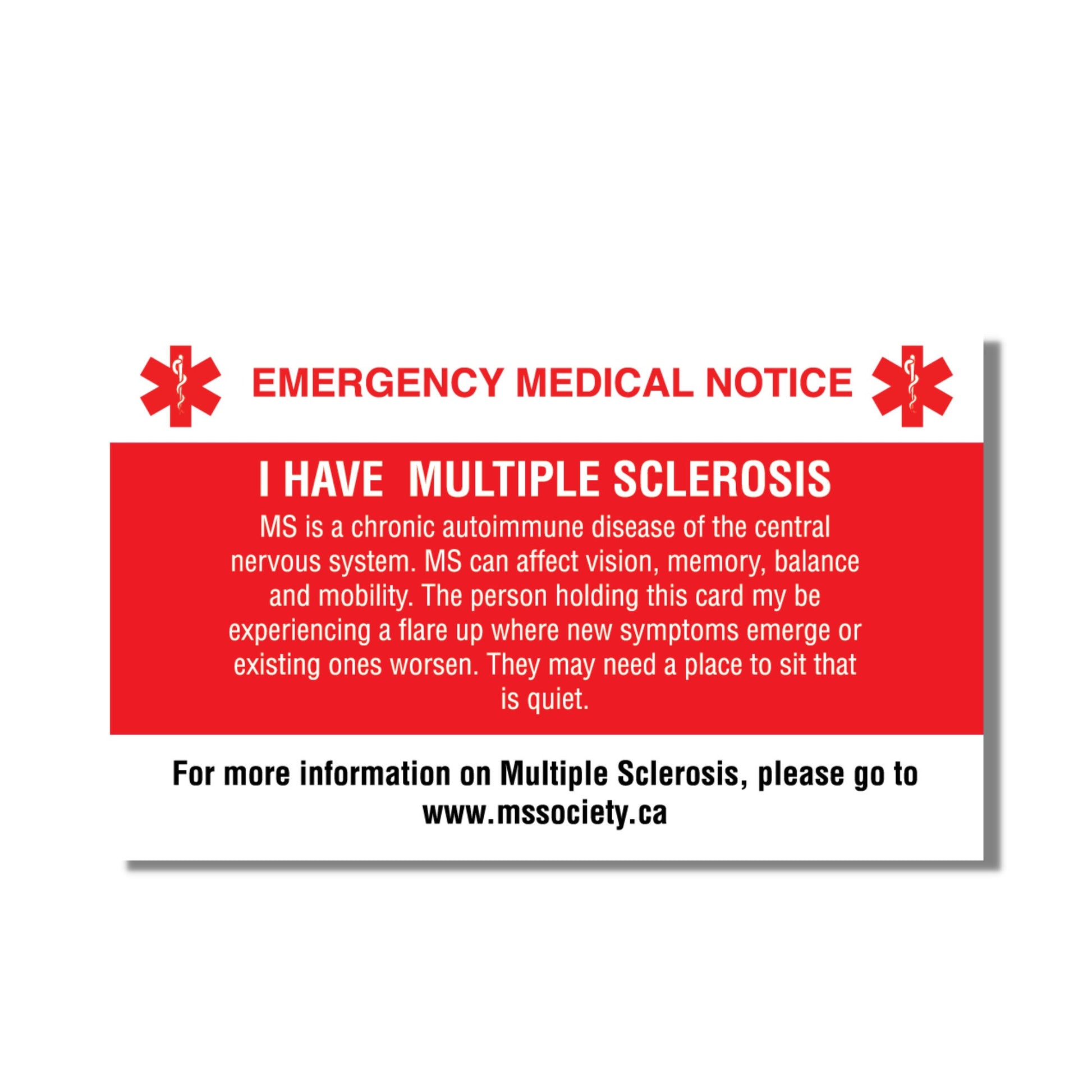 Emergency Medical Card Multiple Sclerosis Medic Alert Card, Rare Disease Awareness