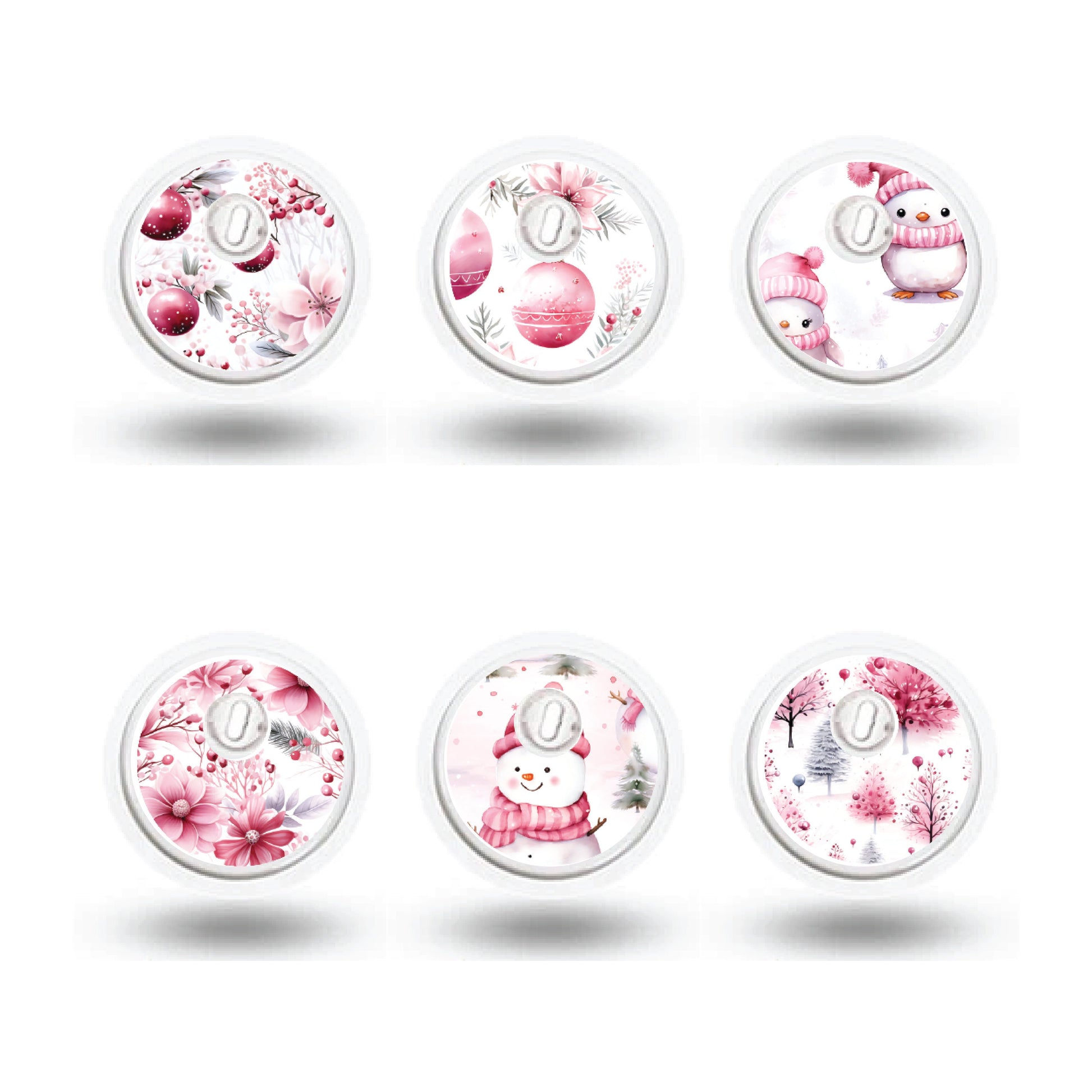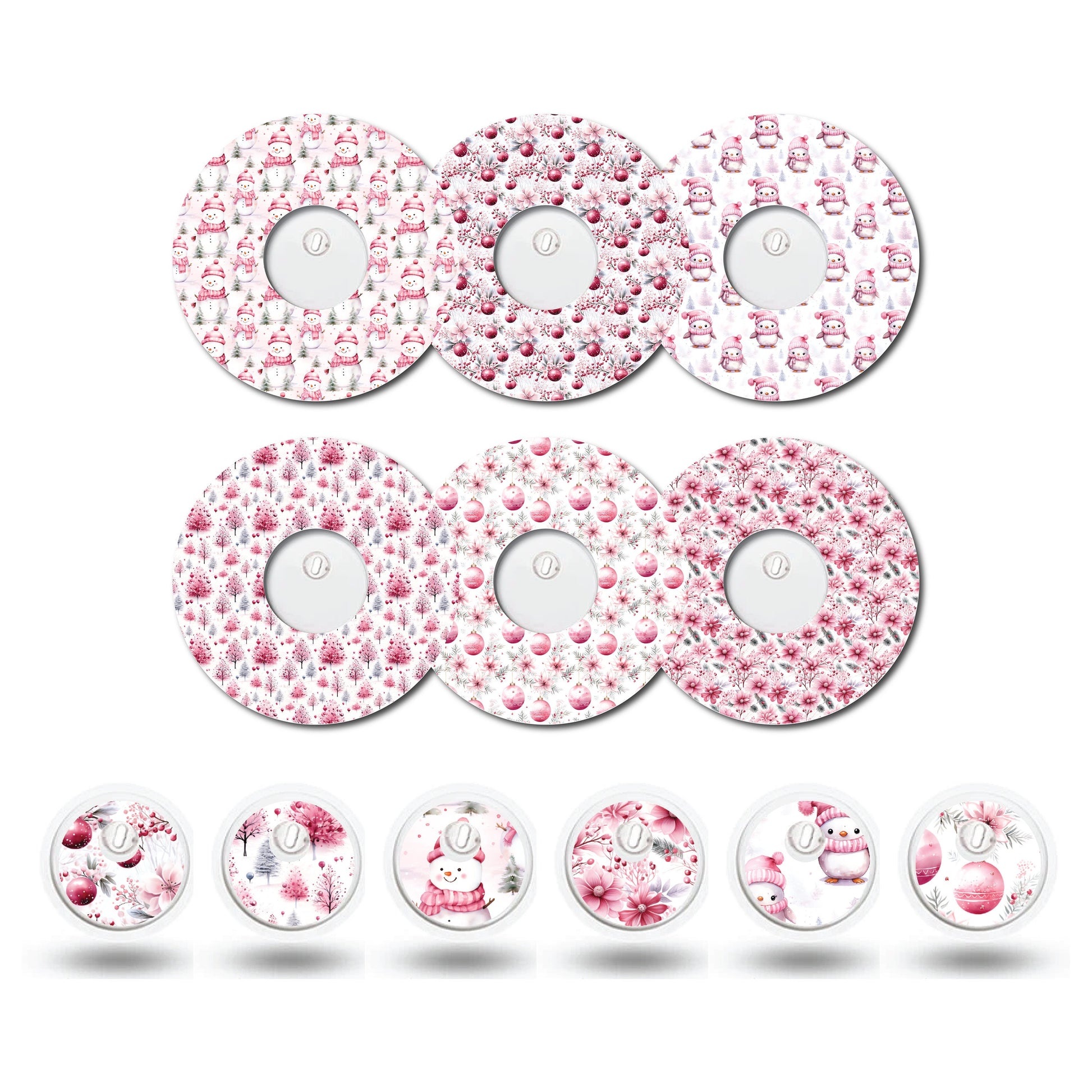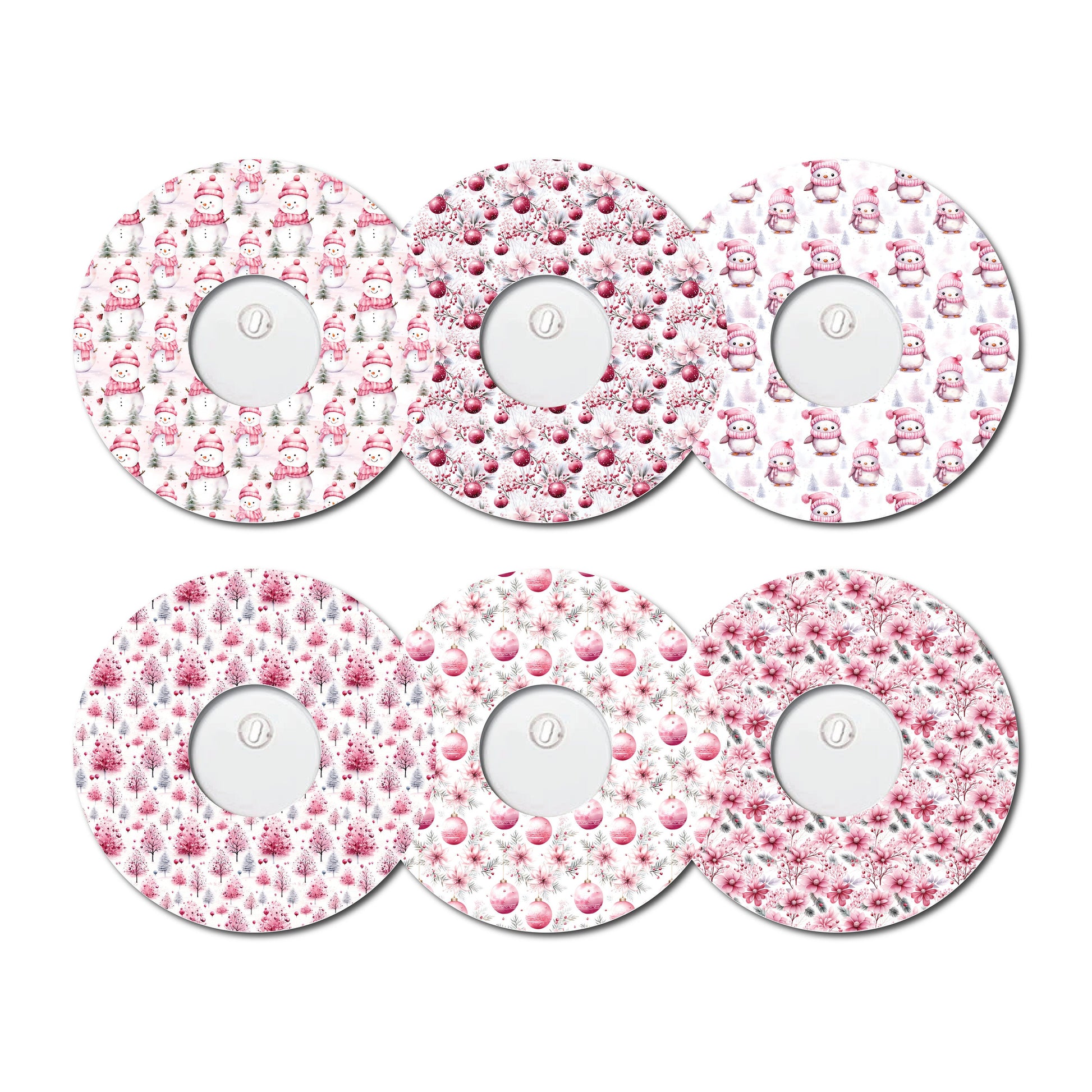 Pink Christmas Collection Patch and Sticker Bundle Freestyle Libre 3-Set of 6 Patch Sticker Overlay for CGM monitor