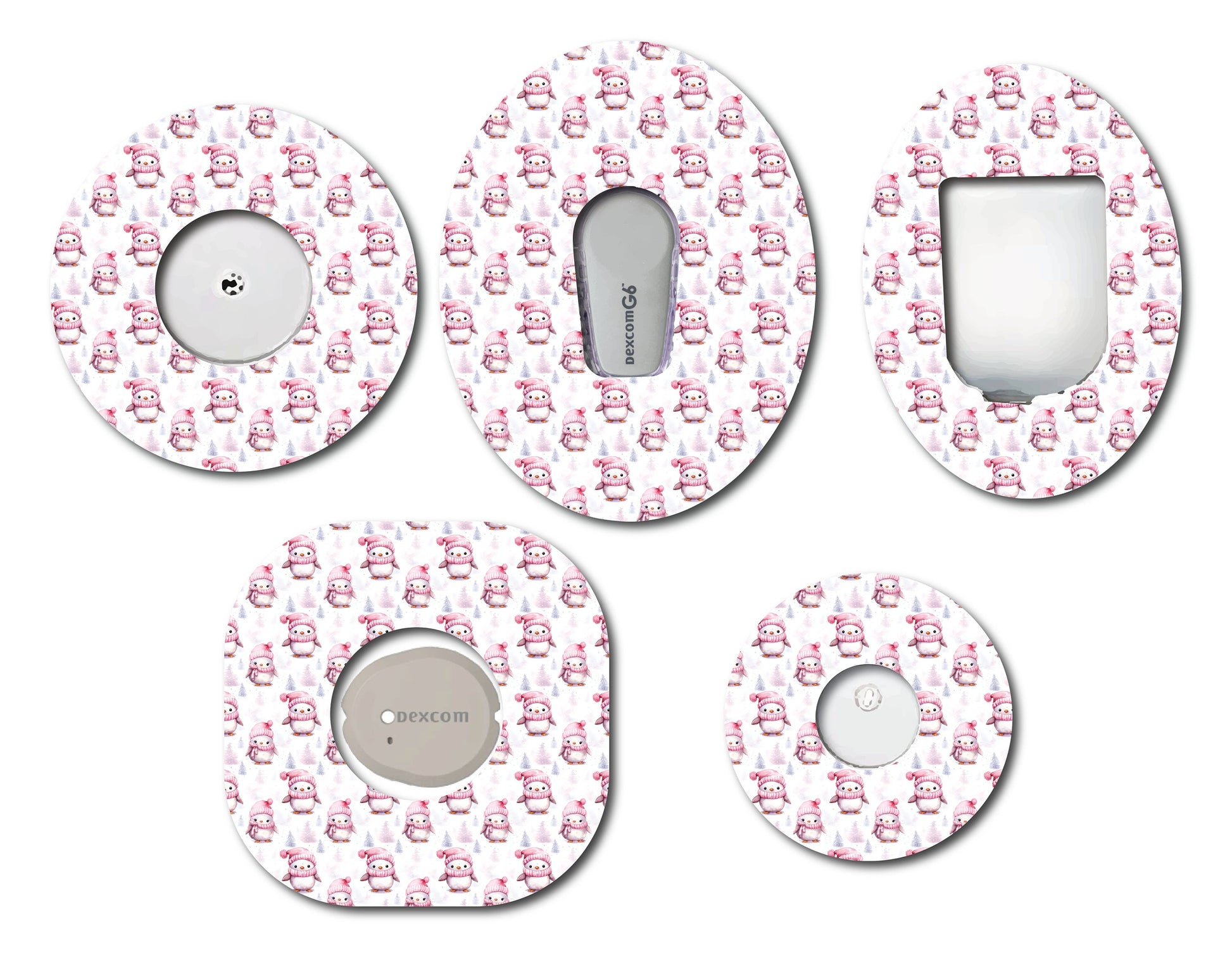 Pink Christmas Collection Penguins CGM patch for Freestyle Libre, Dexcom, Omnipod Continuous Glucose Monitor patches and stickers