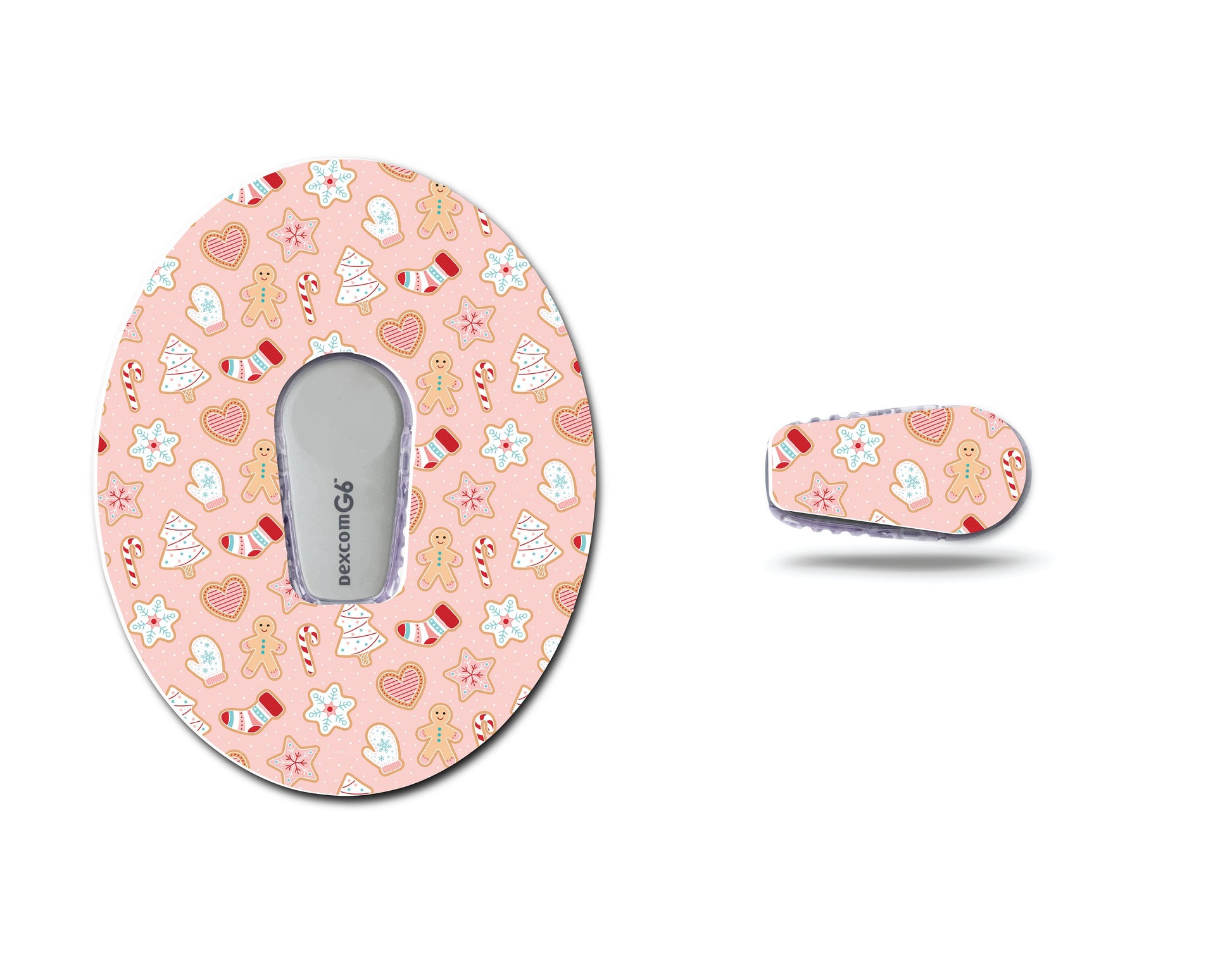 Pink Retro Christmas Continuous Glucose Monitor (CGM) Decorative Over Patch and Sticker/Tattoo Set