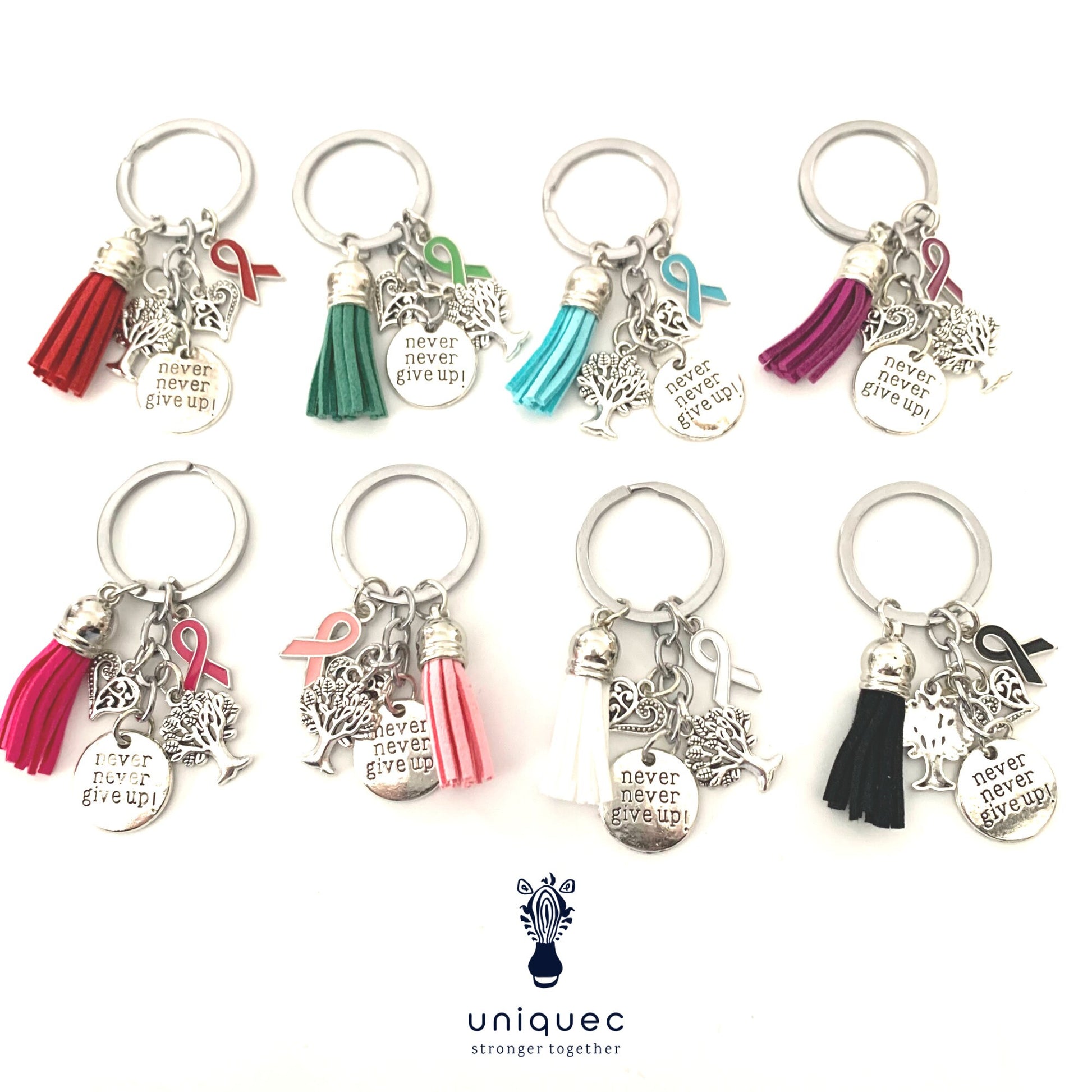 Purple Awareness Ribbon Never Give Up Keychain Rett syndrome, Epilepsy, Lupus, Sjorgren's Syndrome, Chiari Malformation, Alzheimer's