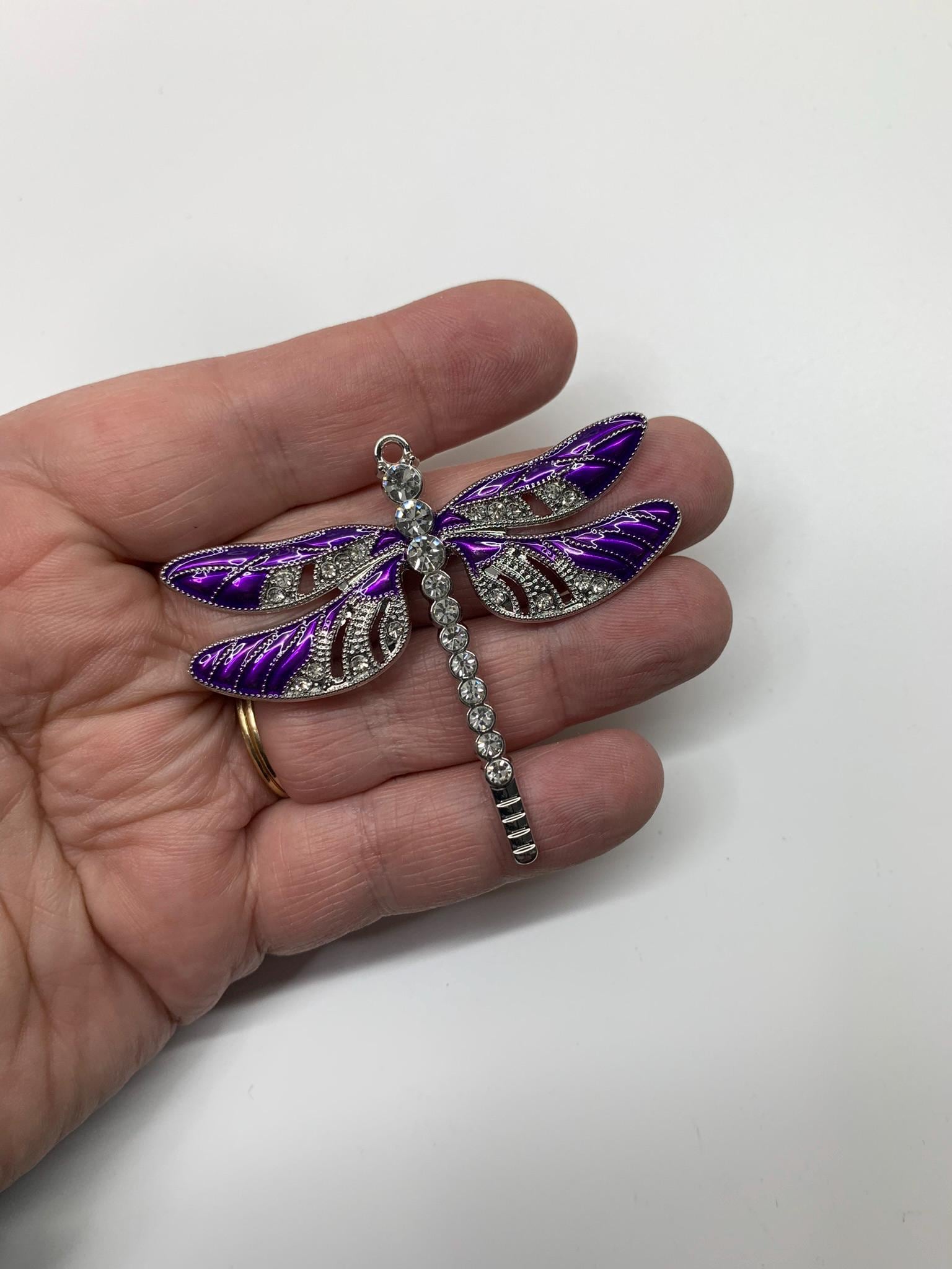 Dragonfly is made of platinum plated zinc alloy that is zinc and lead free. It measures approximately 64 mm wide by 57 mm long.