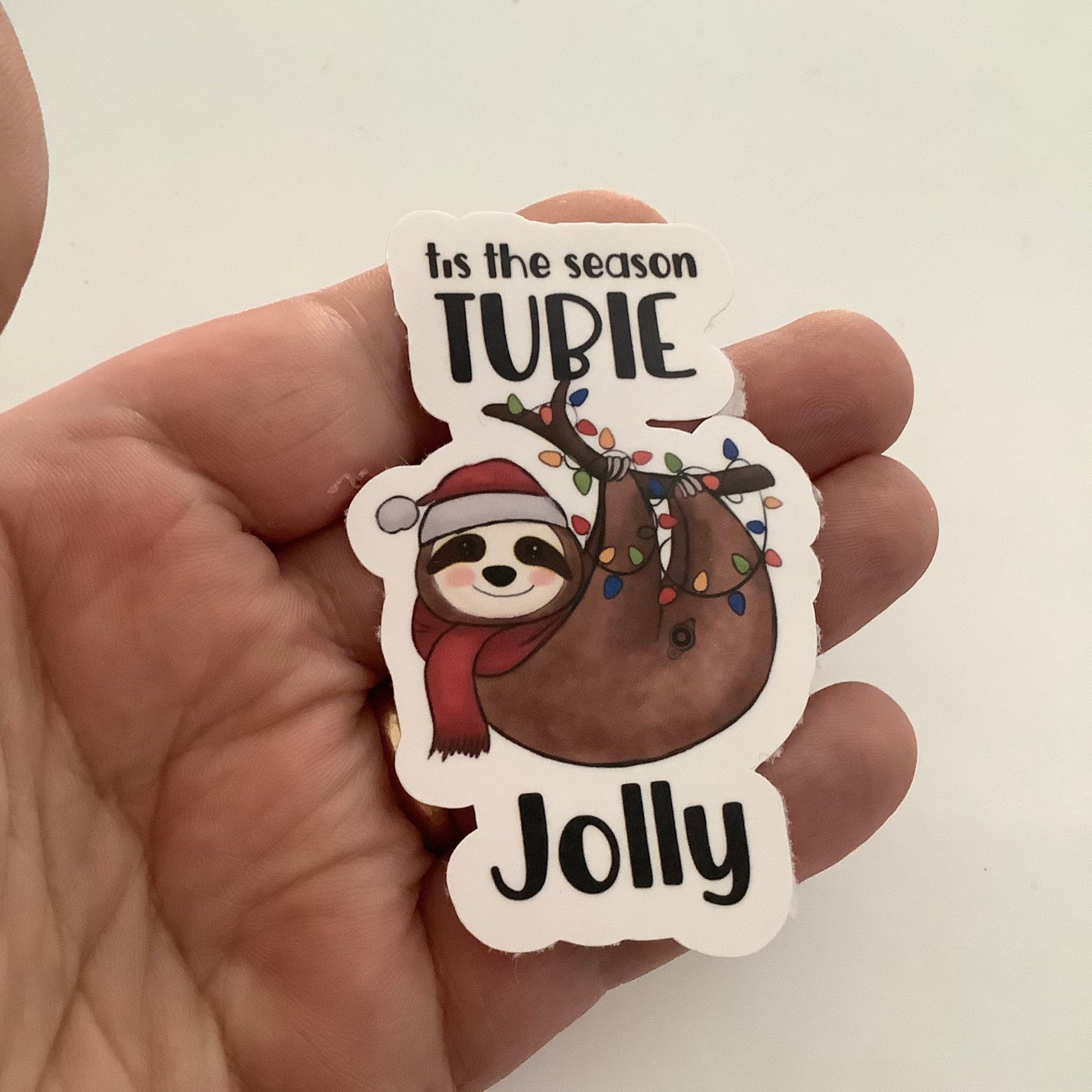 'Tis the Season Tubie Jolly Stickers are a fun and punny expression of living the Tubie Life. The tubie life doesn't pause during the holiday season, so we might as well embrace it with humour.